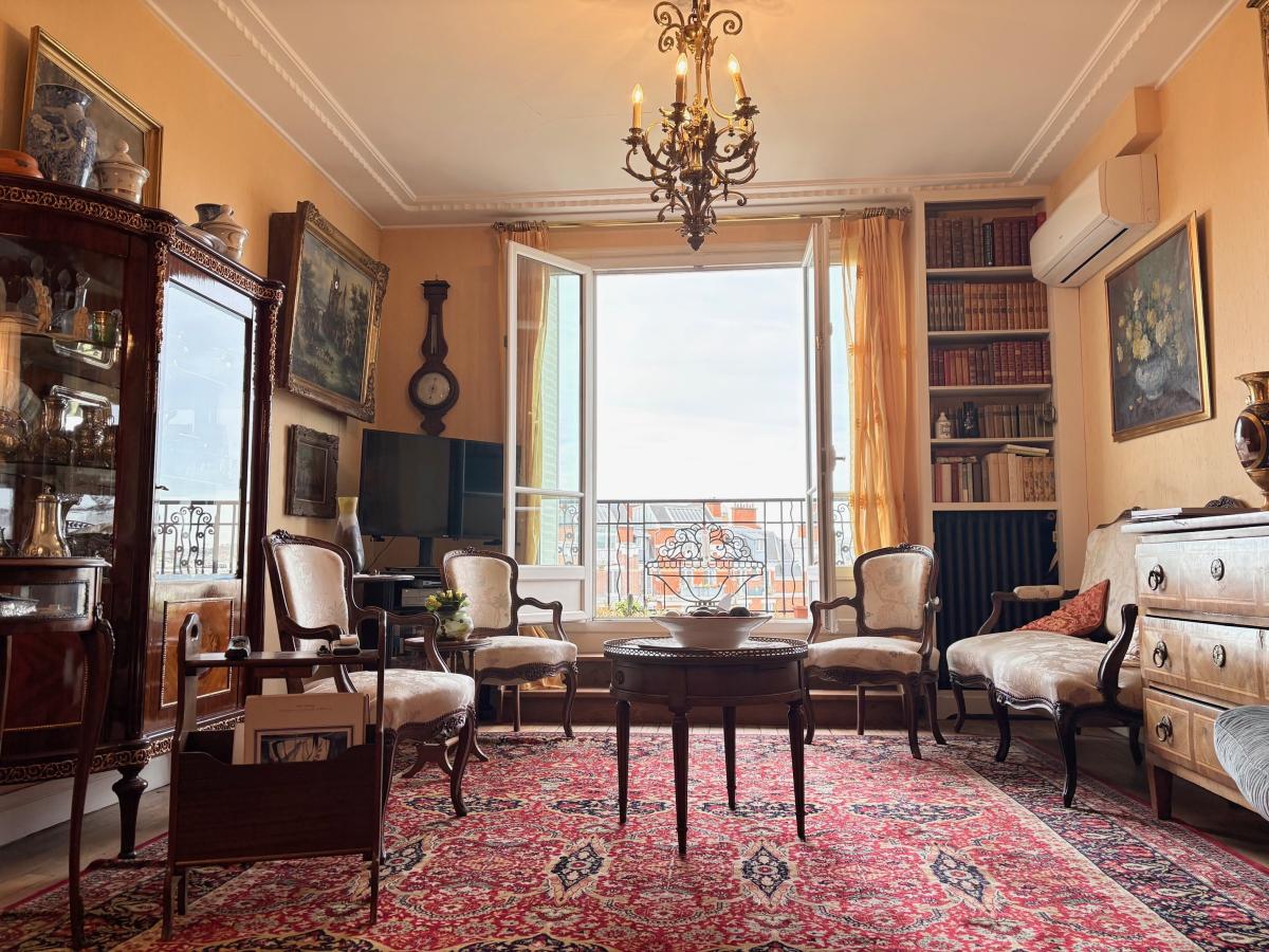 PARIS (17ème) - Métro Porte de Champerret - Dans un immeuble de 1930, au septième étage par ascenseur, APPARTEMENT de 90,15 m², avec balcon filant de 11,10 m². Vue Complètement dégagée de la Tour Eiffel et l'Arc de Triomphe jusqu'à La Défense. L'appartement se compose d'une belle entrée ouverte sur le séjour (38,50 m²), une chambre avec accès à une salle d'eau et à un wc, une cuisine, une deuxième chambre avec accès à une salle d'eau avec wc. Double vitrage. Chauffage collectif. DPE : E. Gardien. Une cave complète ce bien. PRIX : 900.000 euros (en ce compris les honoraires de négociation à la charge de l'acquéreur).