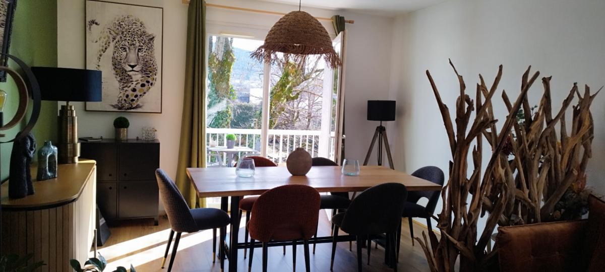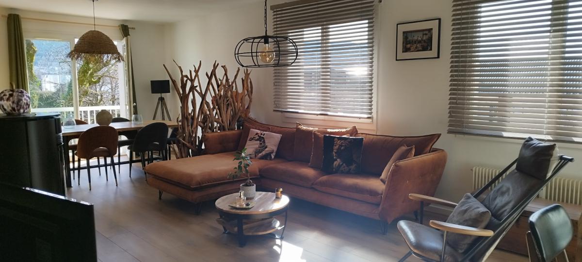 Appartement refait à neuf avec un volume de 91.80m² habitable et une très bonne exposition. Chauffage électrique et poêle à granulé.