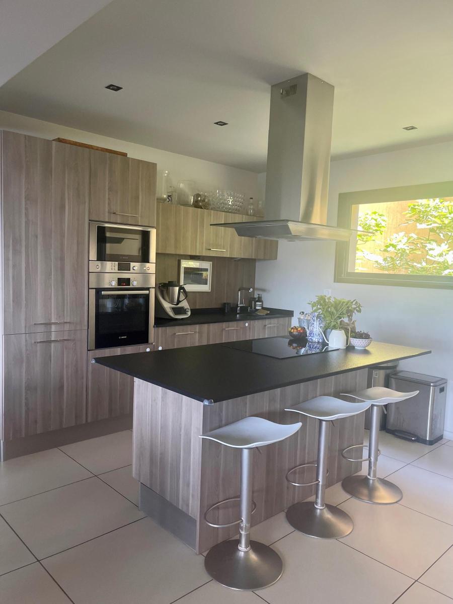 - une partie jour composée d'un hall d'entrée, d'un vaste salon-séjour baigné de lumière, d'une cuisine ouverte agrémentée d'un cellier / buanderie bénéficiant de nombreux rangements,