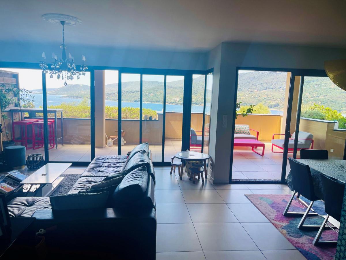 Dans une petite copropriété de standing de trois étages, offrant un cadre de vie agréable sur le littoral avec une vue imprenable et panoramique sur le golfe du Valinco