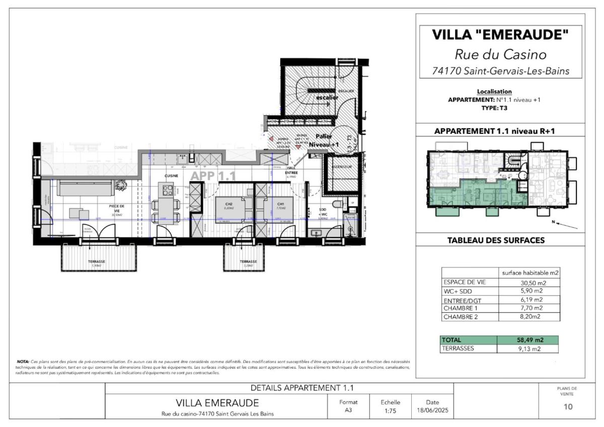L'office notarial vous propose à la vente cet appartement 3 pièces d'une superficie habitable de 58,49 m² situé au 1er étage du programme immobilier neuf "VILLA EMERAUDE" en cours d'édification au cœur du village du Fayet.