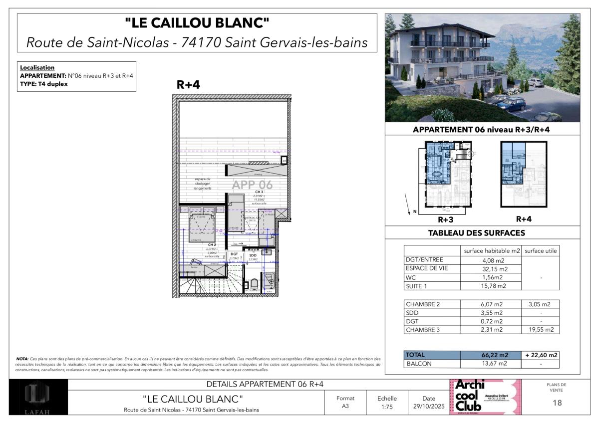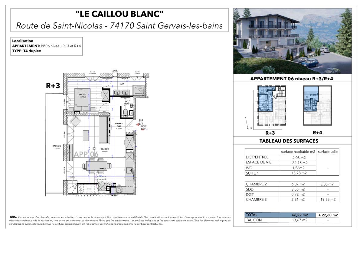Cet appartement duplex d'une superficie habitable de 66,22 m² et d'une surface utile de 88,82 m² comprend :