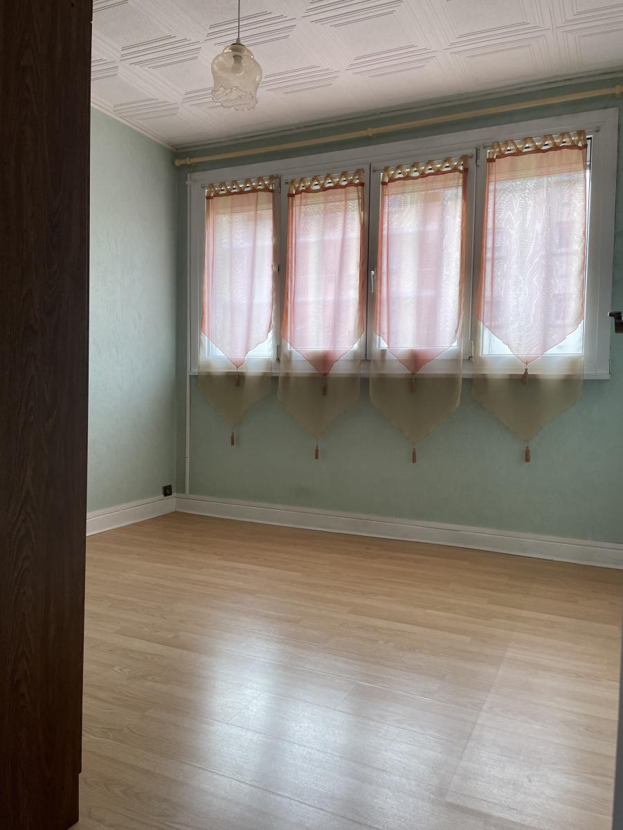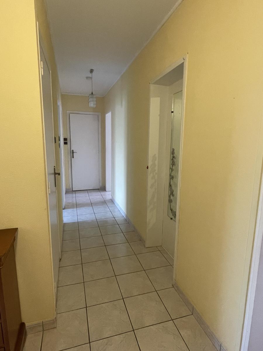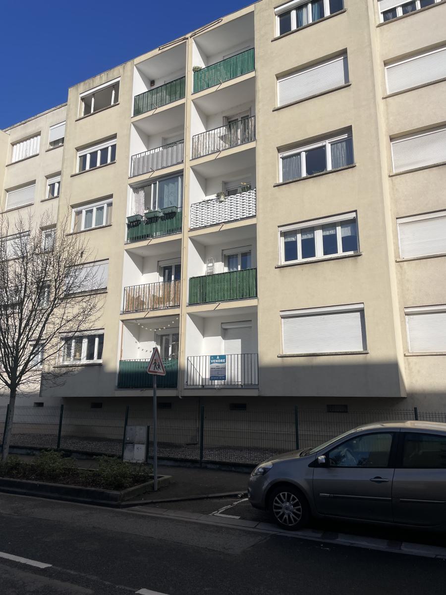 Appartement de type f4 en rez-de-chaussée surélevé composé d'une entrée, un salon/séjour double donnant sur un balcon, une cuisine équipée avec balcon, deux chambres, une salle de bains récente et un débarra. Une cave privative. Double vitrage avec volets roulants électriques