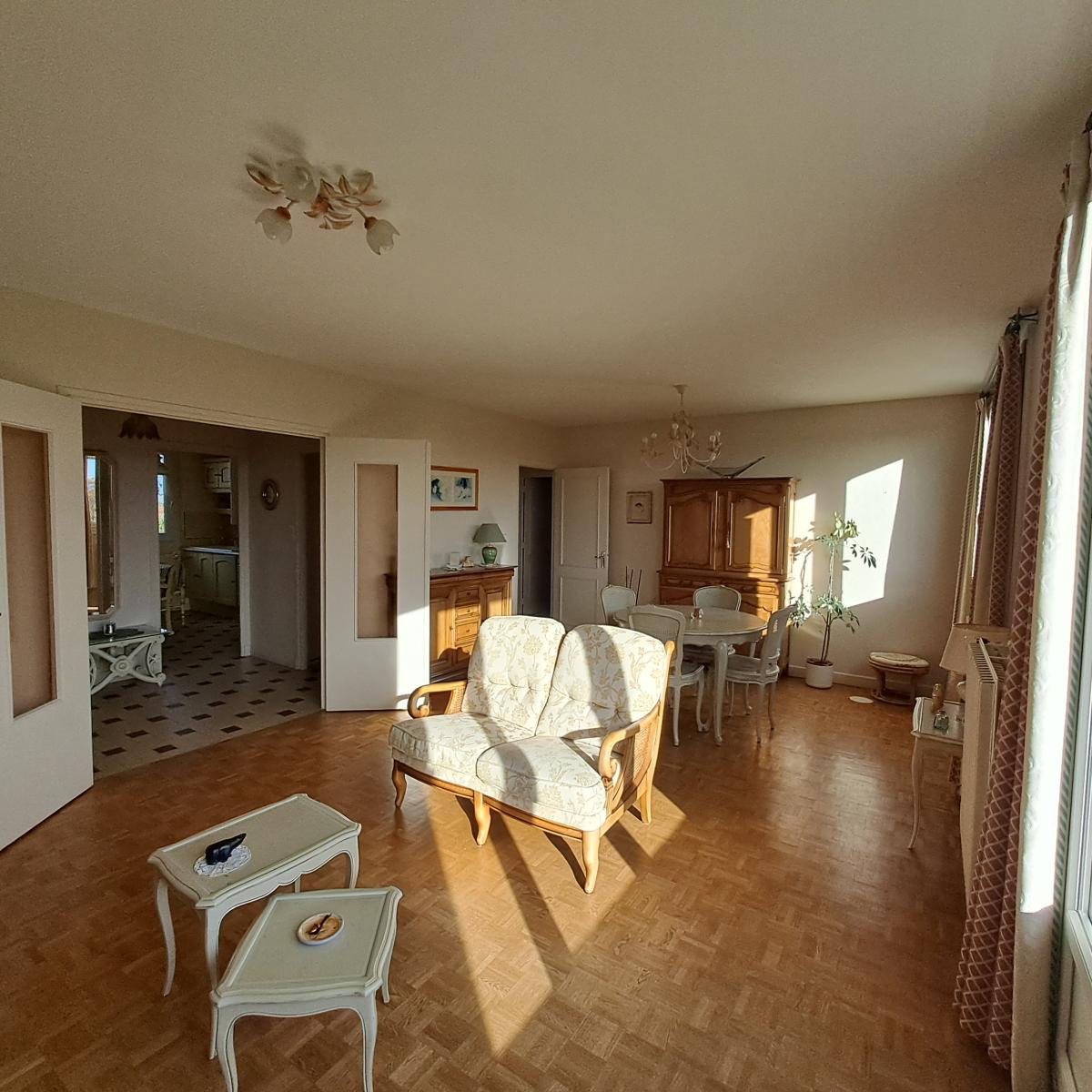 Le séjour, d'une superficie de 26.23 m², est très lumineux grâce à ses deux baies vitrées avec accès sur le balcon de 4.3m².