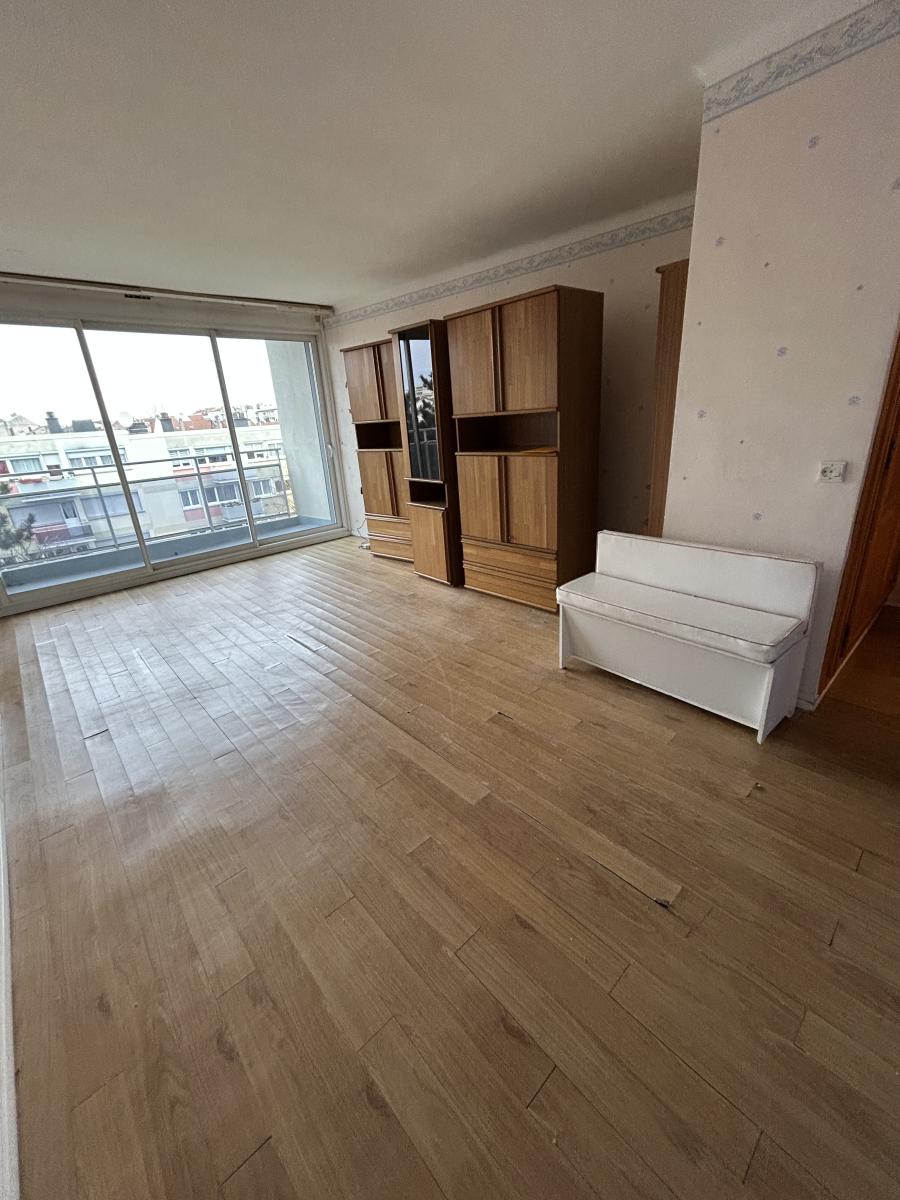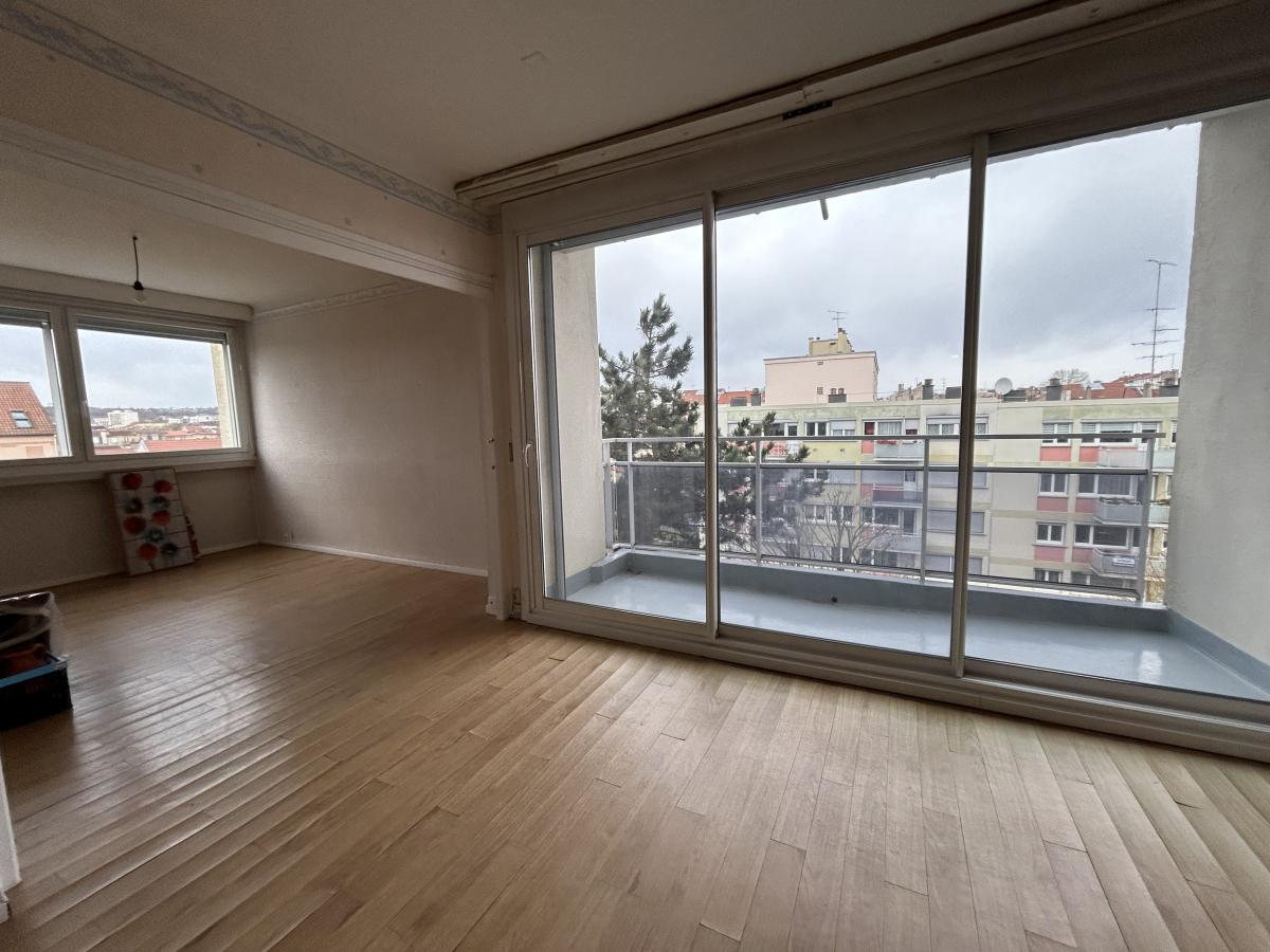 Au 4ème étage avec ascenseur - Appartement de 74m² - Salon/séjour de 32m² avec balcon de 4m² - Cuisine non équipée de 11m² avec balcon de 4m² - 2 chambres de 11m² avec placards - SDD - WC indépendant -