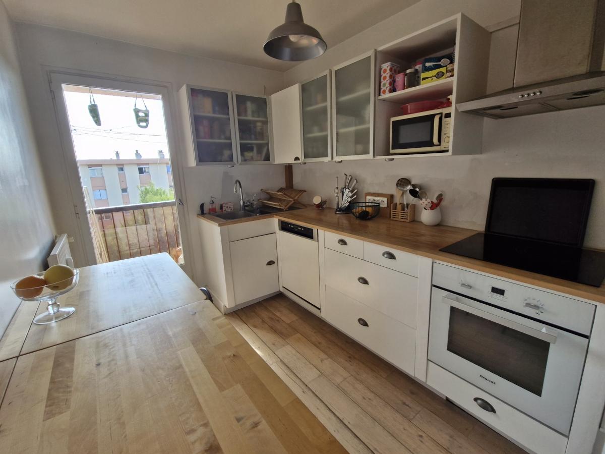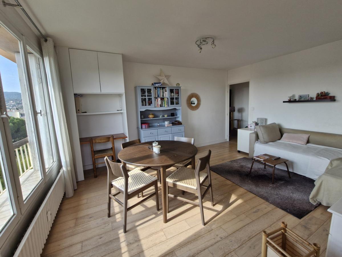 Quartier Olbius Riquier, Accès direct au jardin de la ville, tennis et piscine municipale. A proximité du centre-ville tout en étant au calme, appartement T4 rénové plein sud sans vis-à-vis au dernier étage sans acsenseur. Il se compose d'une entrée, séjour ouvrant sur une terrasse plein ciel assez profonde pour y déjeuner confortablement à l'abris des regards, cuisine indépendante donnant sur une loggia, 3 chambres dont 2 avec placard., salle d'eau, Wc indépendants. Une grande cave et un local vélo complètent l'ensemble. Possibilité de garer plusieurs véhicules au sein de la résidence.