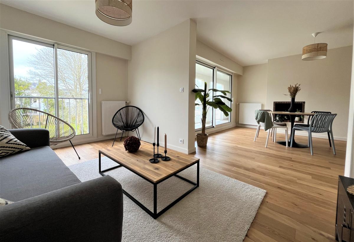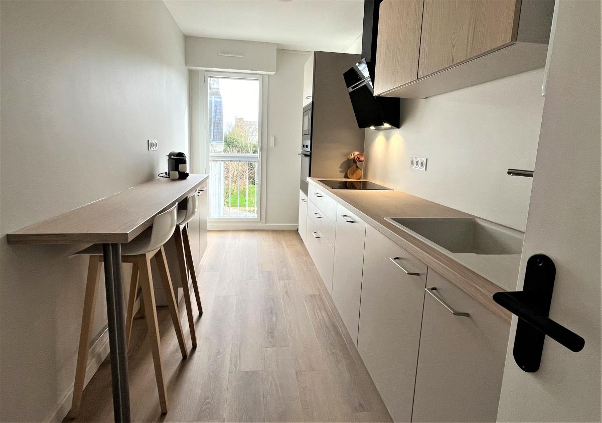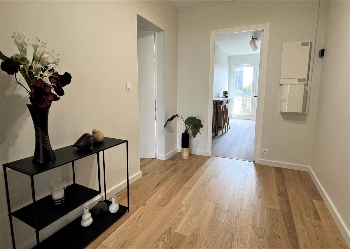 Appartement tout juste rénové, électricité sans anomalie, fibre optique, baies alu avec volets roulants électriques, cuisine IXINA, parquet contrecollé chêne.