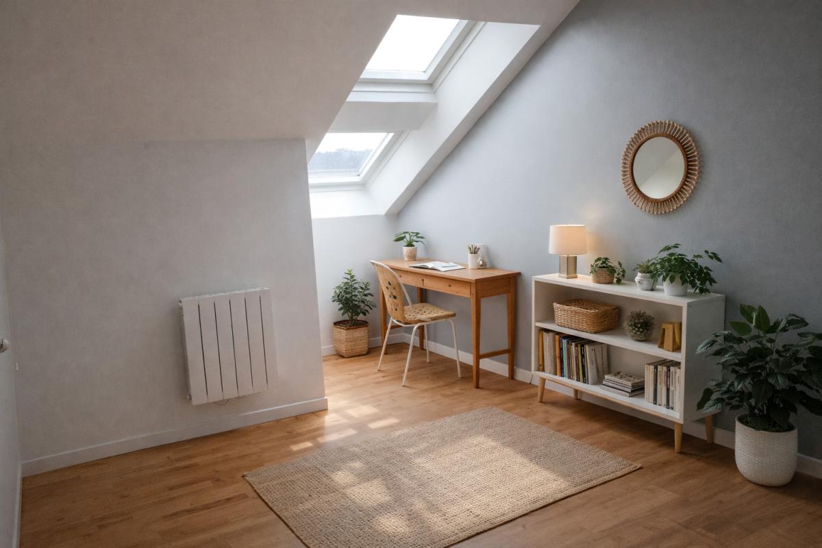 - À l’étage, l’espace nuit se prolonge avec un palier desservant une troisième chambre et une salle d’eau. Idéal pour un espace parent, un adolescent en quête d’indépendance ou un bureau confortable en télétravail.