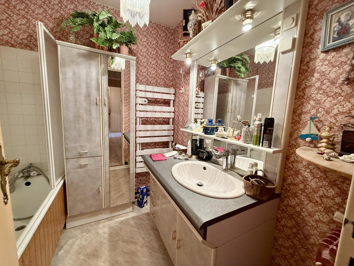 Appartement de type 4 situé au premier étage. Il se compose d'une entrée avec placard, d'une cuisine séparée, d'une pièce de vie d'environ 30m² donnant sur balcon de 10m² exposé Sud Est, de deux chambres (possibilité 3), d'une salle de bain et d'un wc séparé.