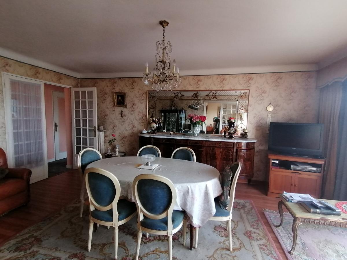 Dans un ensemble en copropriété, au 8ème étage avec ascenseur un appartement à rénover de 88m² comprenant une entrée avec placard, salon et séjour (ou chambre), cuisine aménagée et équipée, cellier, dégagement, 2 chambres, salle de bains, wc