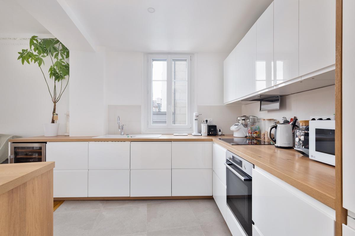 Appartement entièrement refait avec goût valorisant le charme de l'ancien.