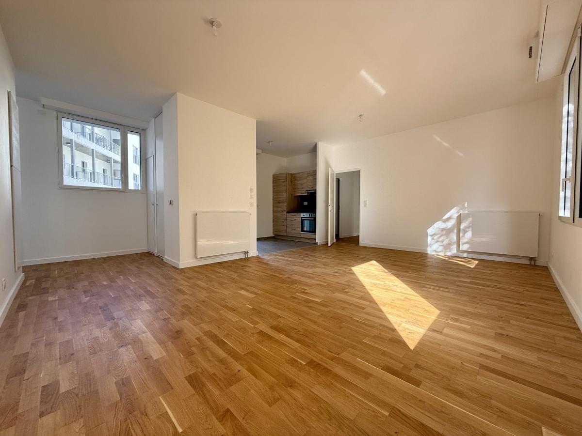 Entrée avec placard, espace salon-séjour avec cuisine ouverte d'une surface totale de 33 m² exposé Sud avec balcon de 4,60m² sur cour, dégagement, 3 chambres avec placards dont une avec salle d'eau privative, salle de bains, cellier, WC.