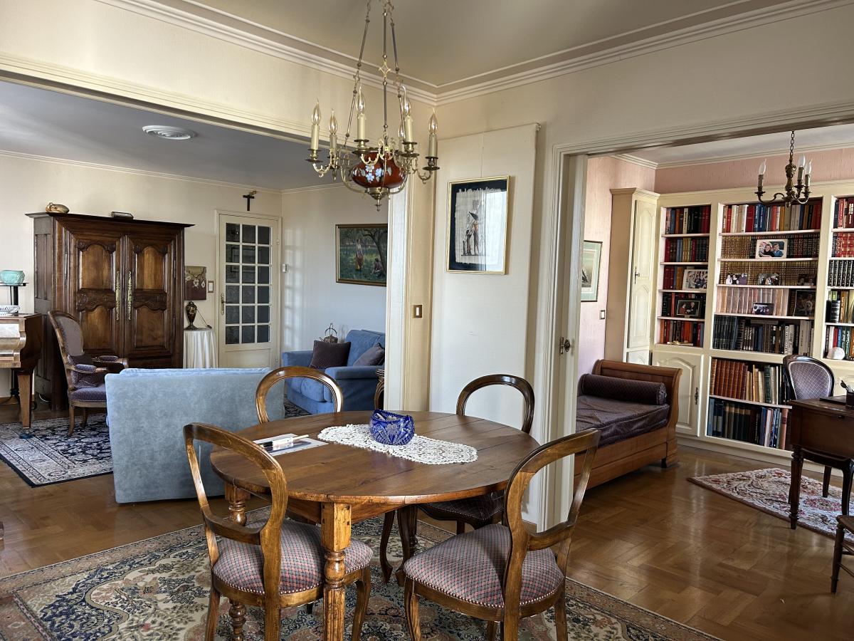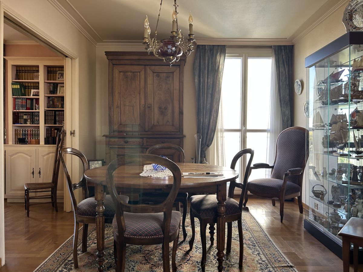 Quartier Diderot. Appartement T4/T5 situé au 5ème étage d'une résidence avec ascenseur, comprenant : Entrée avec placard, dégagement, débarras, grande chambre (possibilité d'en faire 2), séjour, salle à manger, salon, cuisine aménagée et équipée (hotte, plaques, four, réfrigérateur), salle de bains, toilettes. Balcon. Cave. Garage. Huisserie P.V.C. double vitrage. Chaudière gaz de ville. Taxe foncière: 1800€ en 2025. Charges: 429€(1er trimestre 2026)