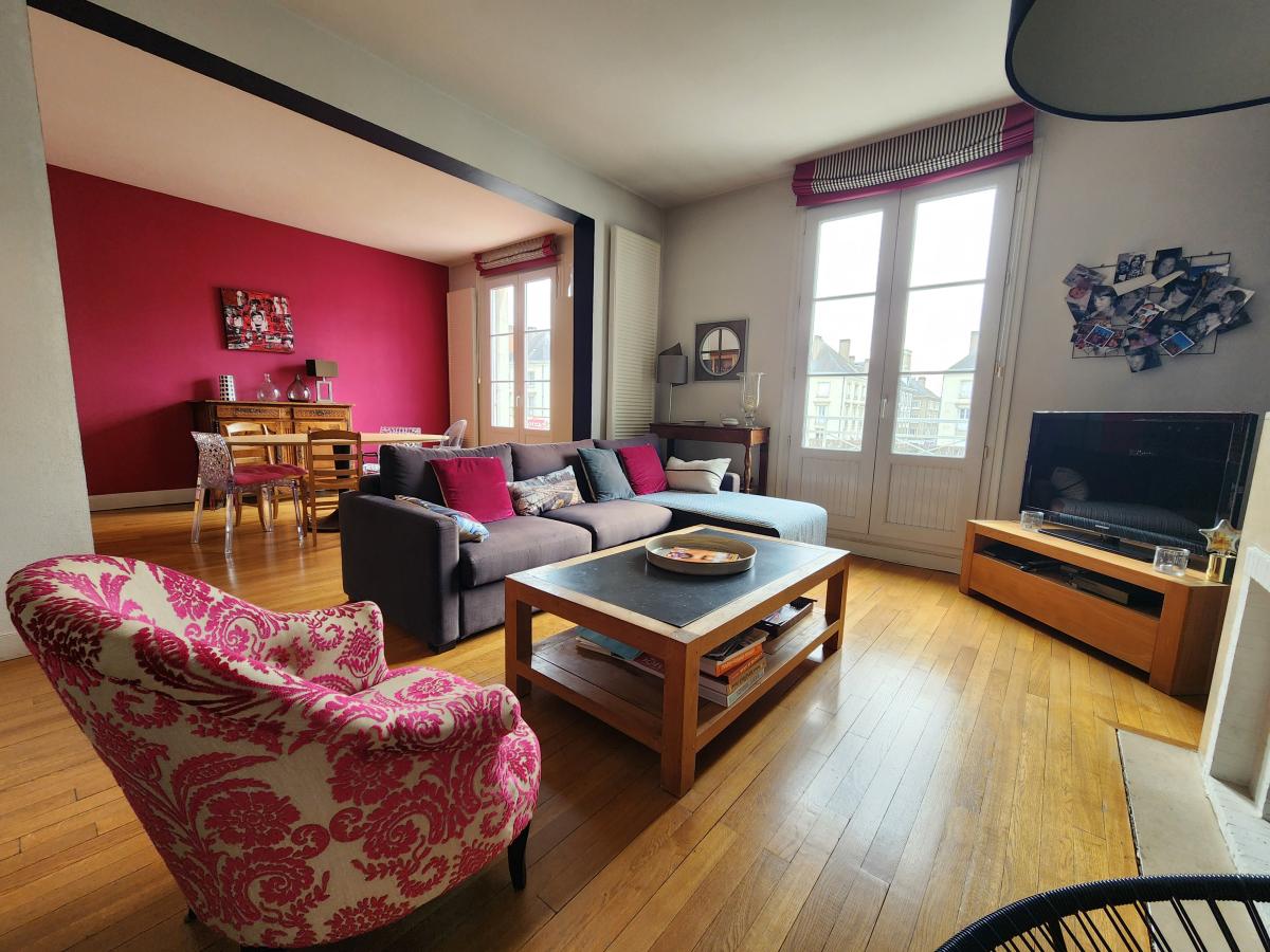 Pièce de vie au charme indéniable avec parquet massif, cheminée en marbre et belle hauteur sous plafond.
