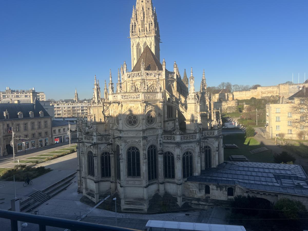 CAEN CENTRE - VUE EXCEPTIONNELLE sur église Saint Pierre - Lumineux 4 pièces de 96 m2 sis au 4ème étage sans ascenseur comprenant entrée avec placards, séjour salon de 27 m2, cuisine aménagée de 15 m2, 2 chambres de 16.50 m2 et 14.50 m2, salle d'eau, wc. Cave.