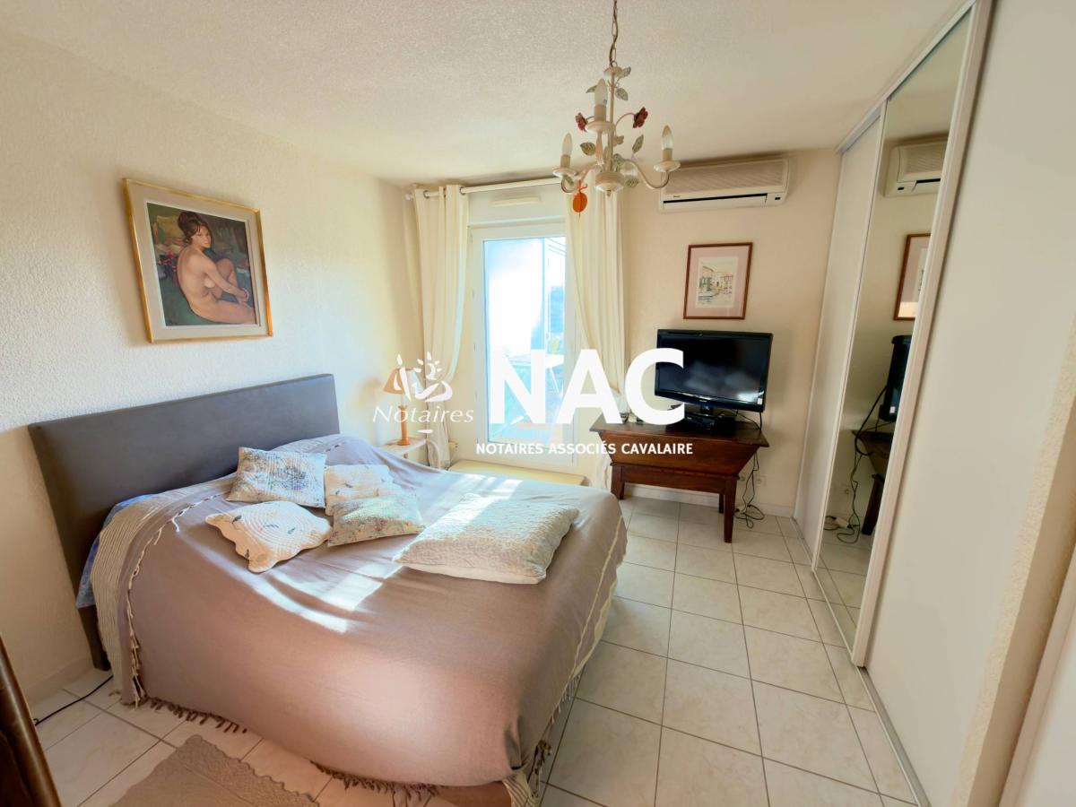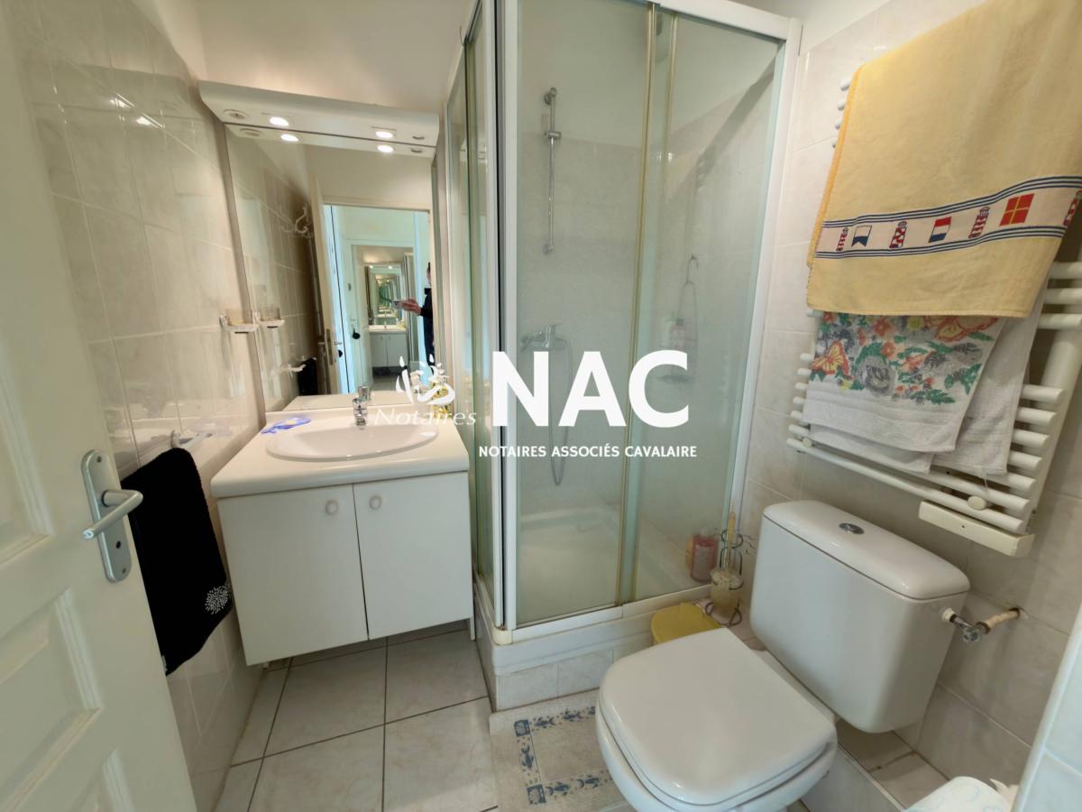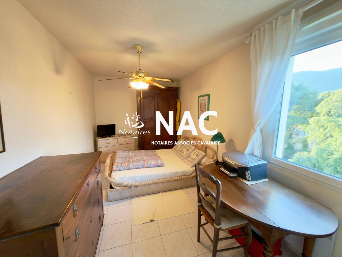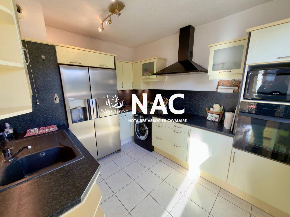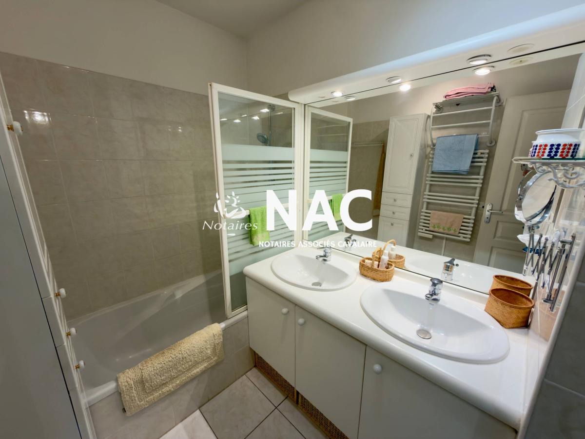 CAVALAIRE SUR MER - CENTRE-VILLE À PIEDS - À vendre, appartement 4 pièces de 97m² situé au 4ᵉ et dernier étage d’une résidence sécurisée. Il comprend une entrée avec placard, WC invités, salle de douches, séjour / salle à manger d’environ 31 m² avec cheminée, cuisine indépendante équipée, 3 chambres avec placards, salle de bains avec WC.