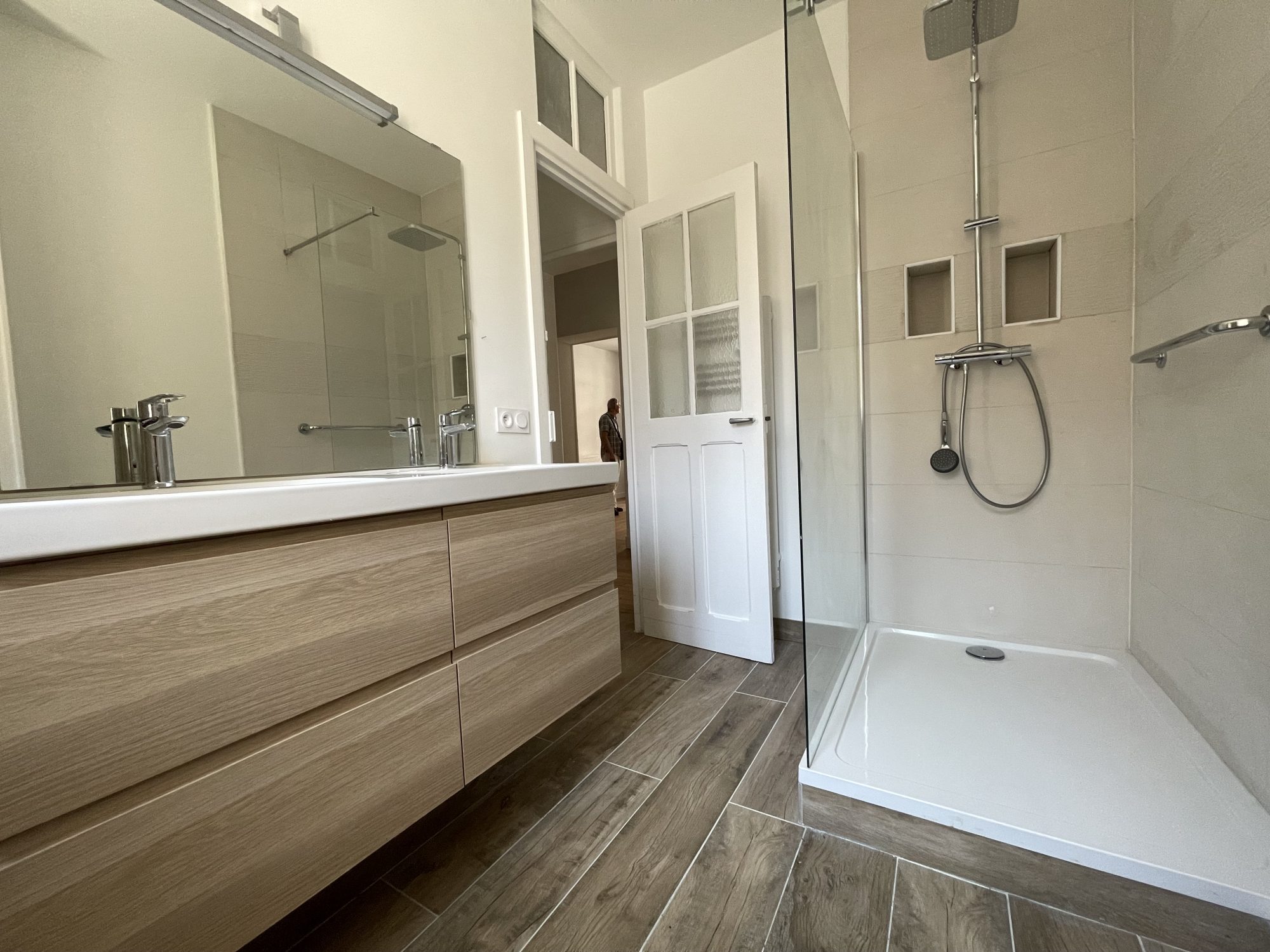 Appartement F4 de 96 m² avec ascenseur et belles prestations composé d'une belle entrée spacieuse desservant un beau séjour parqueté avec balcon et cuisine ouverte aménagée et équipée ( four , hotte et plaques) , arrière cuisine , deux belles chambres parquetées avec balcon , salle d'eau , wc et buanderie .