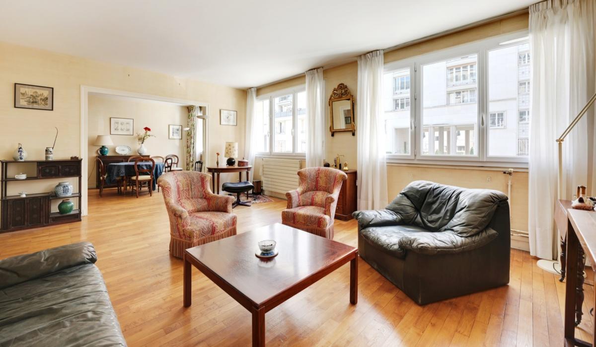 PARIS 17e - RUE VERNIQUET, situé à 300 mètres du métro et RER Pereire et à 200 mètres du Tram 3, bel appartement familial de 5 pièces de 102 m² au 1er étage, accessible par ascenseur.