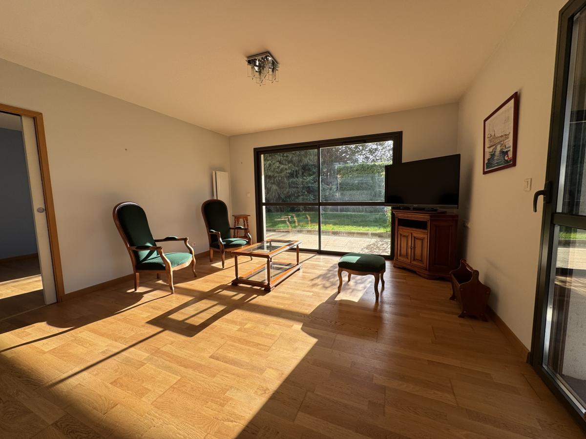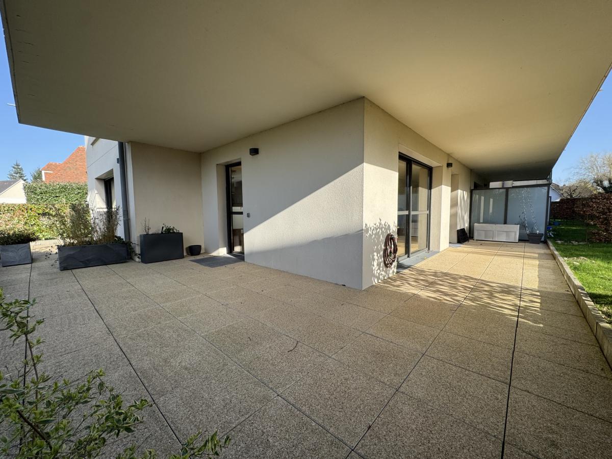BOIS GUILLAUME Centre - Au pied des Commerces : Nouveauté dans Résidence de Standing entièrement Clos et Sécurisée, Magnifique Appartement de 103 M² habitable en Rez-de-Jardin offrant: Hall d'Entrée avec rangements, Lumineuse pièce de vie de 50 M² (Séjour-salon, salle à manger et cuisine équipée ouverte) avec Terrasses Sud et Ouest, Arrière Cuisine et Buanderie, Chambre parentale avec ses Placards de rangement et sa Salle de Douche avec W.c. Dégagement, Bureau, Chambre avec Salle de douche privative et W.c indépendant. Emplacement de parking extérieur et Garage sécurisé en sous-sol. Chauffage et production d'Eau chaude individuels électrique.