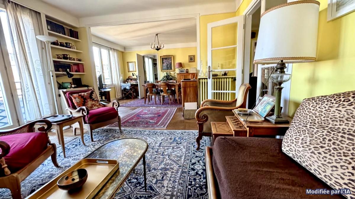 Notaire vend, au 7ème étage d'un immeuble de 1954 de bon standing situé entre la Porte d'Auteuil et la Porte de Saint-Cloud, cet appartement familial traversant et très lumineux, composé d'un double séjour avec balcon, trois chambres, dont une avec balcon, une cuisine dînatoire, une salle de bains, une salle de douche et un WC . Au 9ème étage, une chambre de service de 7 m²avec point d'eau.