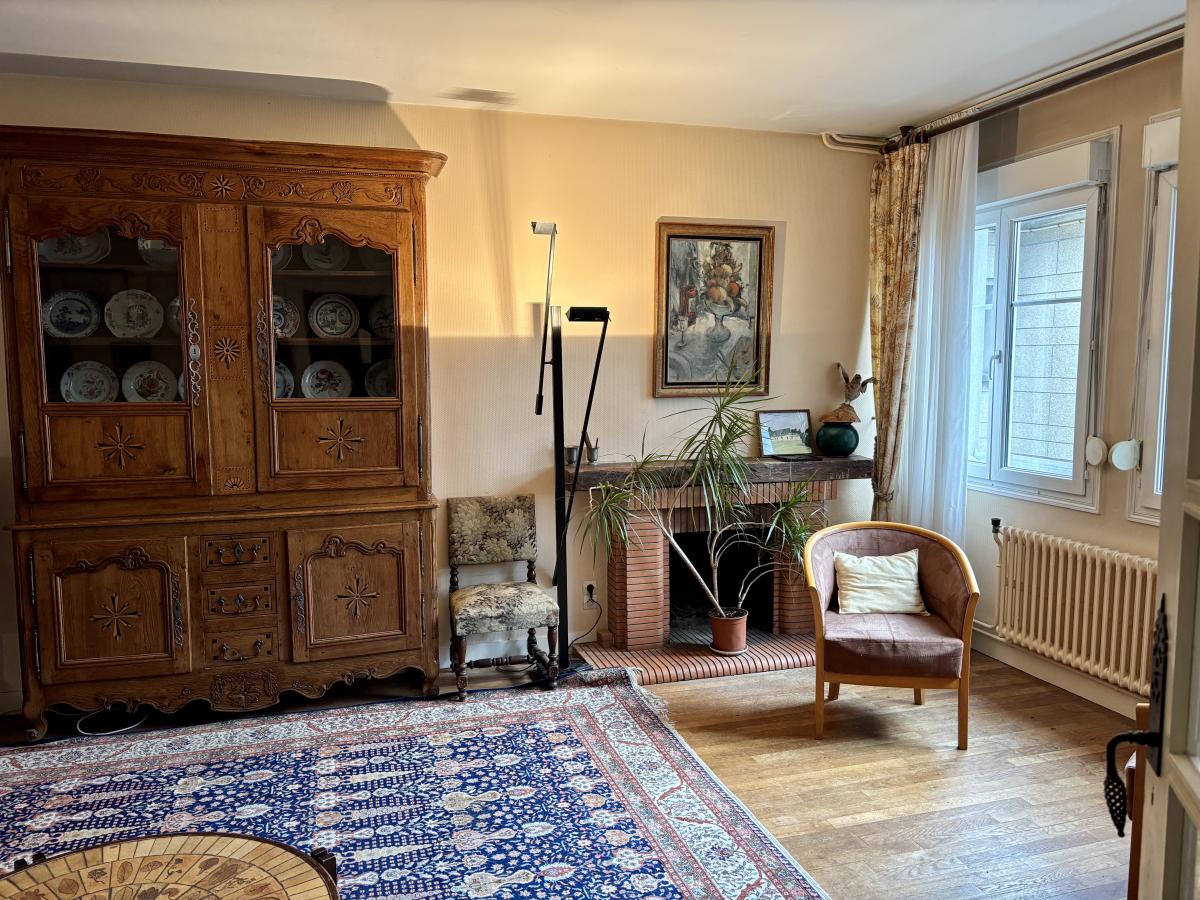 - Au deuxième étage : une entrée avec espace de rangement distribue un séjour/salon chaleureux, agrémenté d’une cheminée et d’un parquet massif, ainsi qu’une cuisine aménagée et équipée. Une salle de bains, un espace de rangement supplémentaire et un WC complètent ce niveau.
