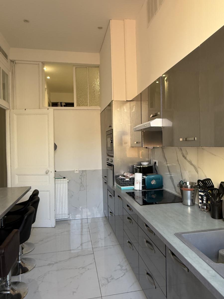 Cet appartement bourgeois avec très belle hauteur sous plafond est situé au deuxième étage et se compose d'une entrée, d'un salon spacieux donnant sur un balcon arboré avec vue dégagée , d'un séjour convivial, d'une cuisine équipée, de deux chambres, d'un bureau, d'un salle d'eau avec water-closet et d'un water-closet indépendant.