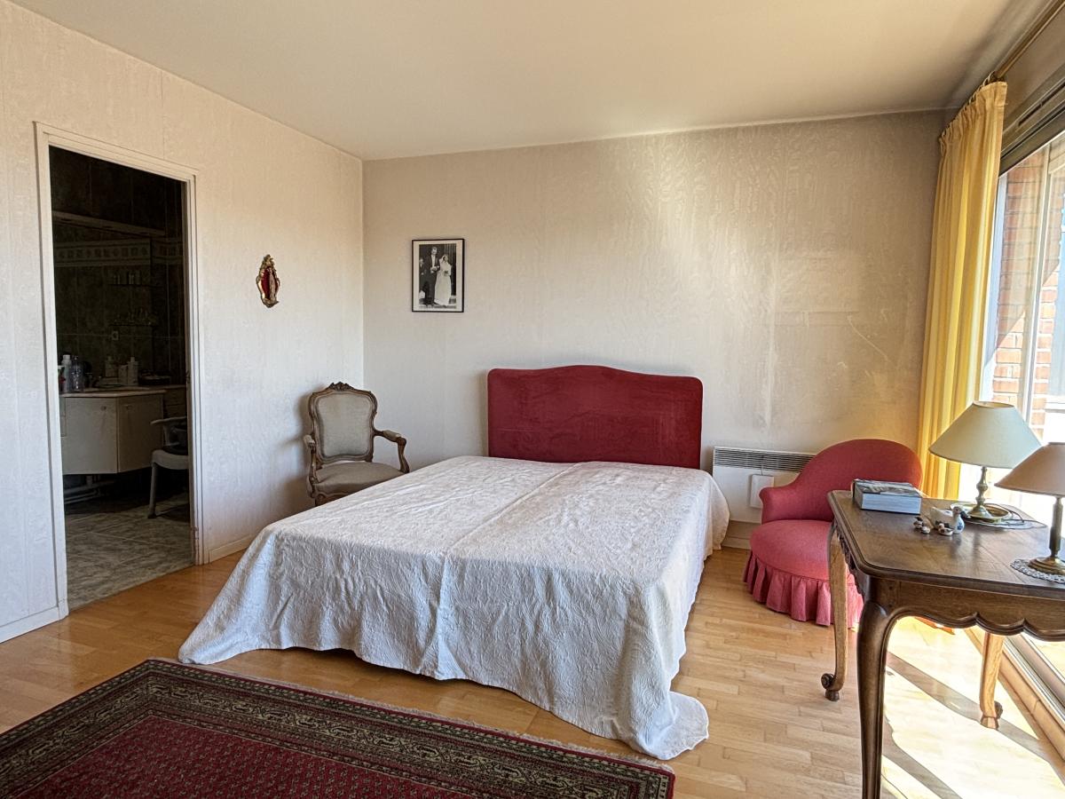 LILLE ST MAUR à deux pas du Tramway, au dernier étage d'une résidence sécurisée avec ascenseur. Bel Appartement T5 de 133.02 m² (réunion de 3 lots) comprenant un hall d'entrée avec placards, un séjour, une salle à manger, une cuisine équipée, une suite parentale comprenant dressing et salle de bains ainsi qu'un accès à un balcon, 2 autres chambres et une seconde salle de bains. Nombreux rangements