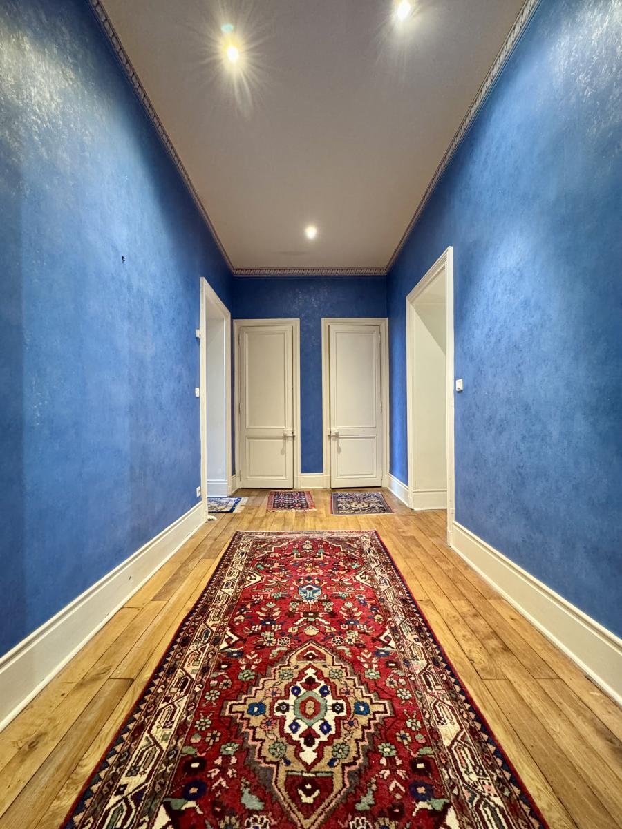 Ce T5 traversant, avec exposition Est, spacieux de 150 m² habitables, niché au 1er étage d’un bel immeuble ancien de 1900 en bon état (sans ascenseur), allie charme de l’ancien et confort moderne.