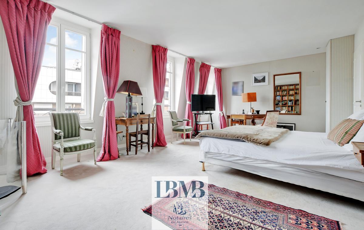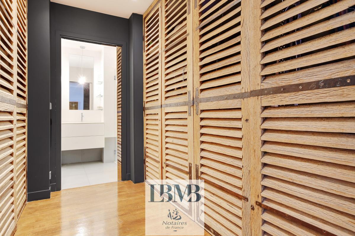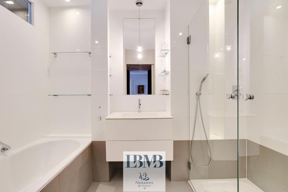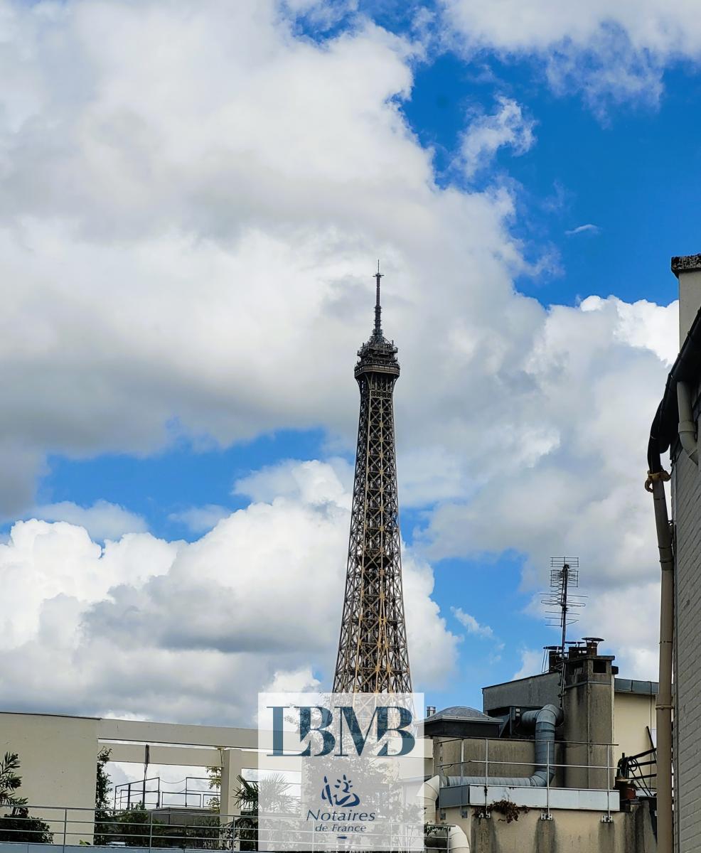 Le niveau supérieur distribue une grande chambre principale donnant sur l'avenue, une grande salle de bain, un dressing. Une deuxième chambre avec salle d'eau et vue sur la Tour Eiffel, un bureau ouvert sur le palier pouvant être transformé en 3ème chambre. Une salle d'eau et un WC indépendant.
