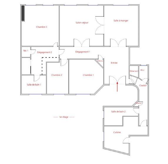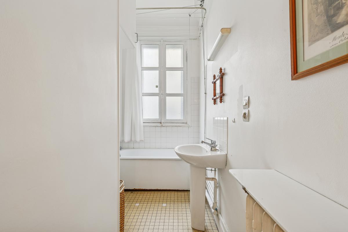 Il se compose d’une large entrée, d’une double réception sur rue, d’une chambre principale avec salle de bains, toilettes et dressing, de deux chambres sur cour au calme (dont une avec cabinet de toilettes), d’une seconde salle de bains, d’une cuisine indépendante avec accès de service et de toilettes invités. Travaux à prévoir.