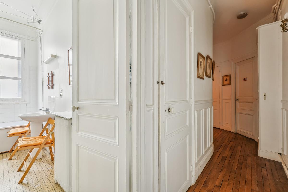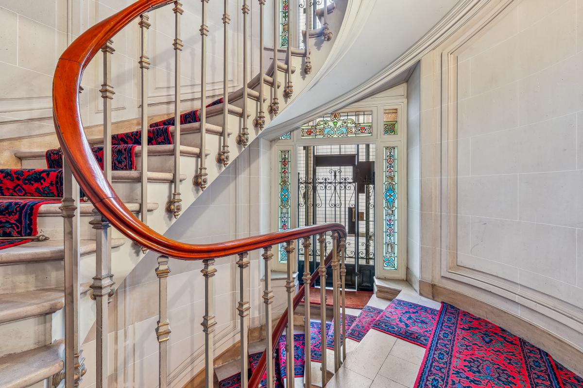 Au premier étage d’un bel immeuble de standing de la fin du XIXᵉ siècle avec gardienne, élégant appartement de 168 m² ayant conservé tout le charme de l’ancien : moulures, boiseries, parquet en point de Hongrie, cheminée et 3,10 m de hauteur sous plafond.