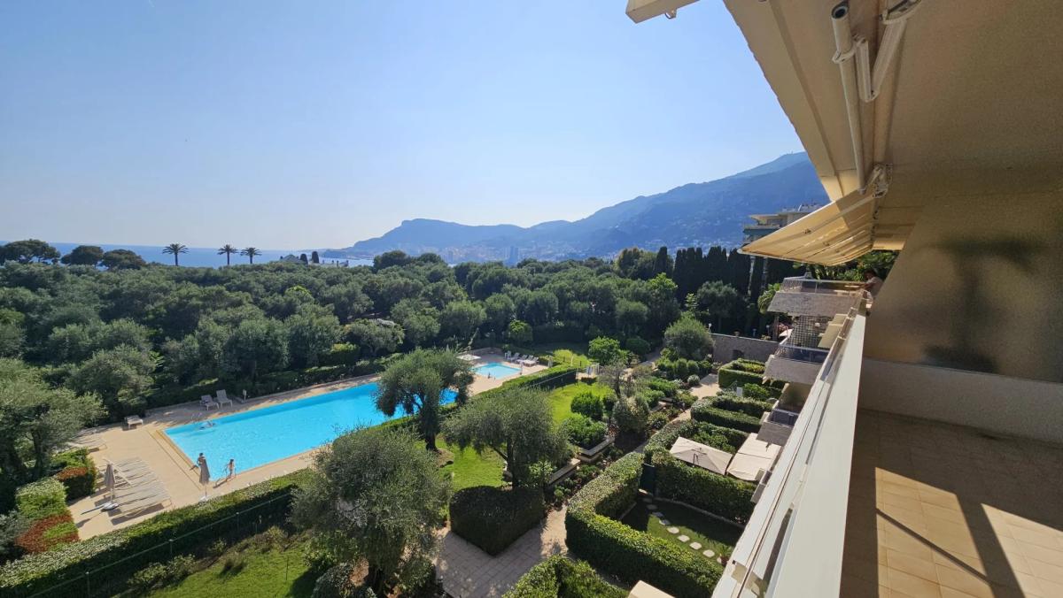 Calme absolu en exposition OUEST avec superbe vue sur mer jusqu'à MONACO.