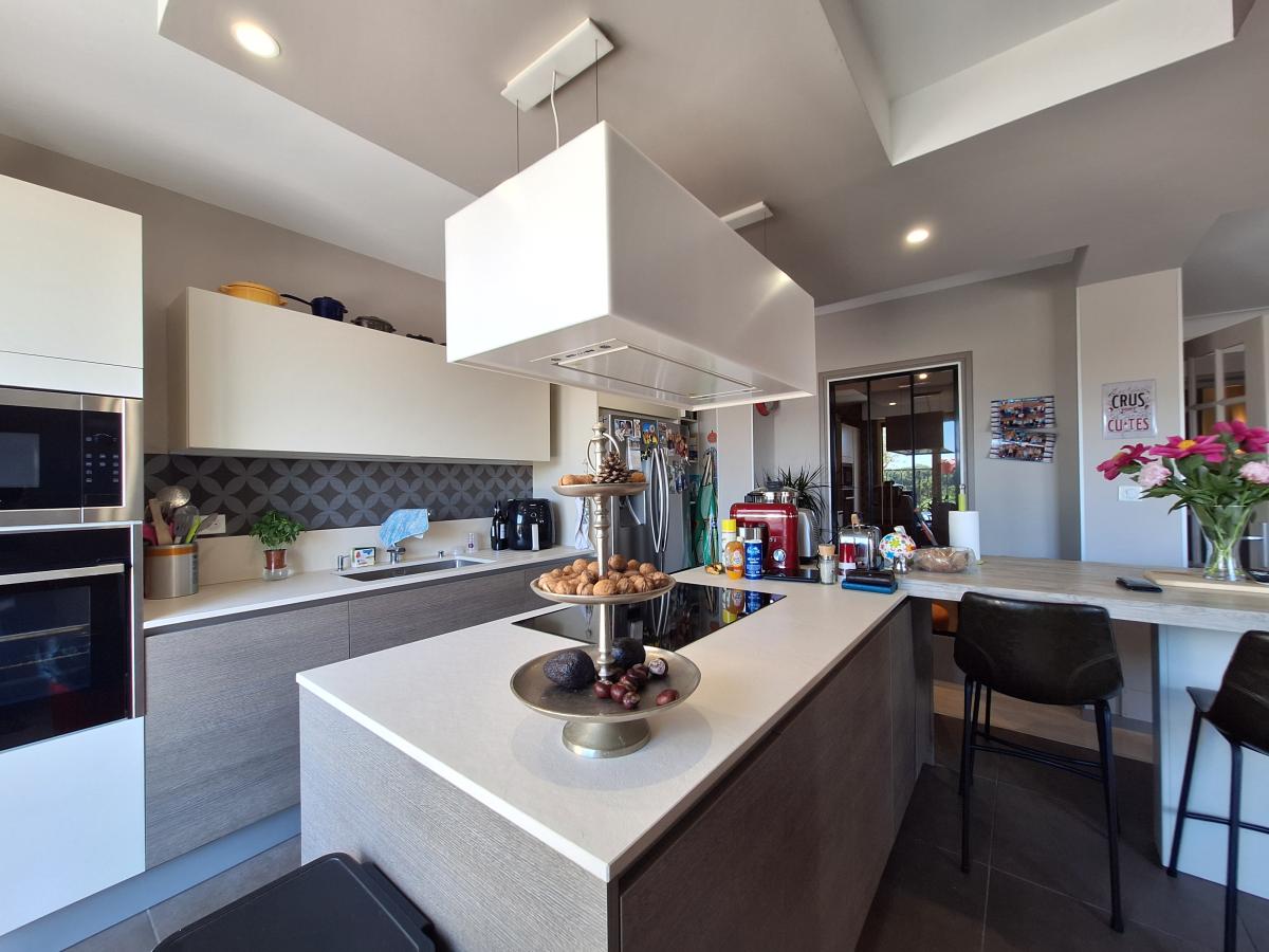 Hall, cuisine équipée haut de gamme, salon/séjour (60m²) avec cheminée