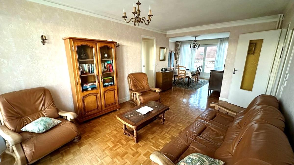 Appartement traversant de 92m², comprenant salon-séjour d'environ 32m², cuisine, 3 chambres, salle de bains,