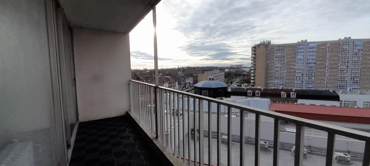 Roubaix, Mac Arthur, appartement de Type 5 rénové, de 94.64 m², situé au 7 ème étage avec ascenseur, il offre une vue dégagée avec un balcon bien exposé. Il se compose d'une entrée, salon/séjour, une cuisine à équiper, 4 chambres, 2 salle de bains.