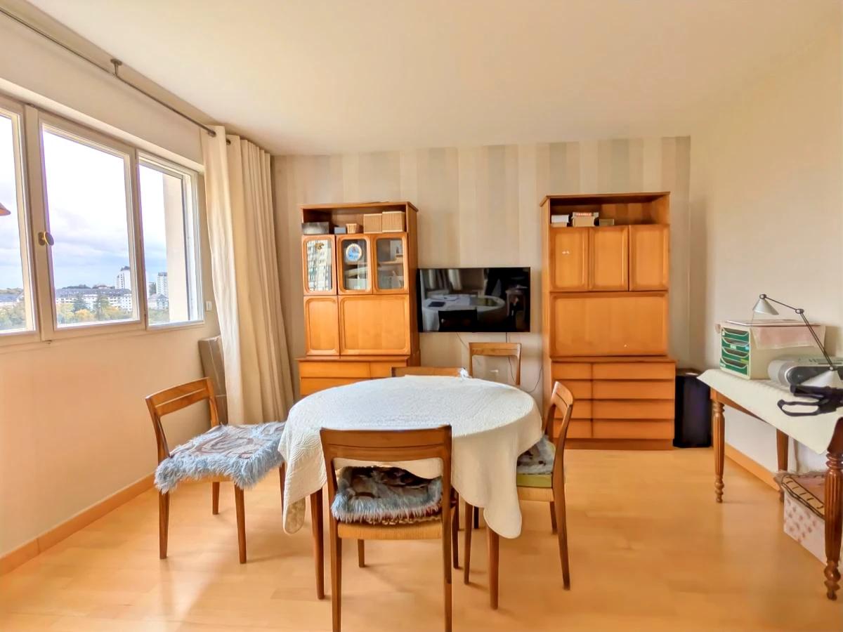Au 6ème étage d'un immeuble en copropriété, appartement T5 de 97.84m²loi carrez. Il se compose de : entrée avec placard, séjour avec balcon sud, salon, cuisine aménagée, trois chambres,