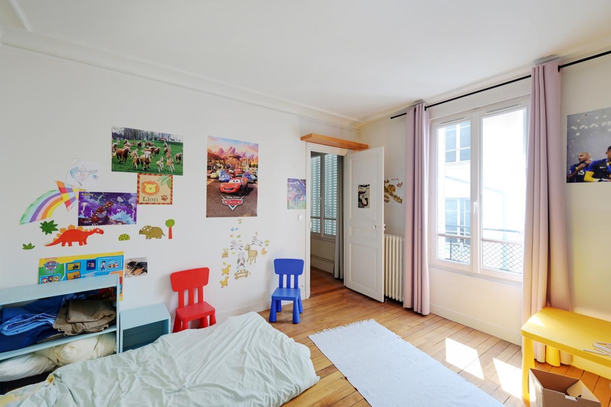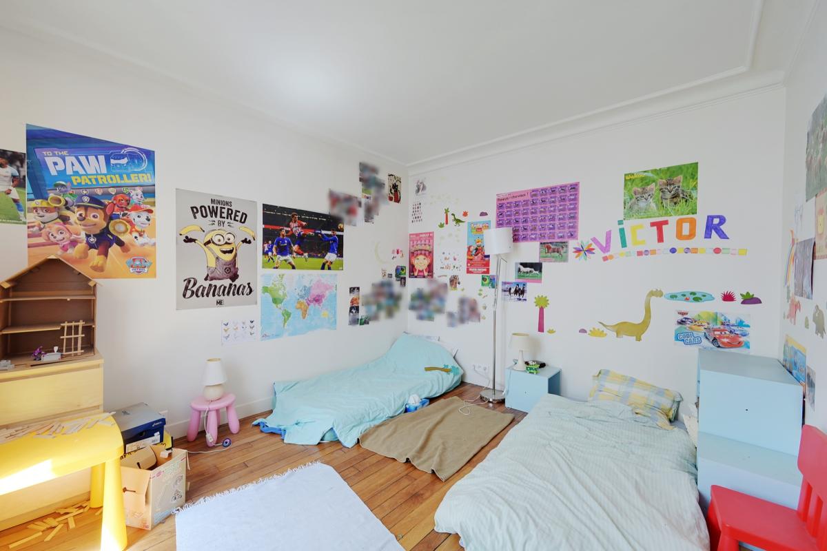 Dans un bel immeuble ancien en pierre et brique, un appartement familial, situé au troisième étage sans ascenseur.