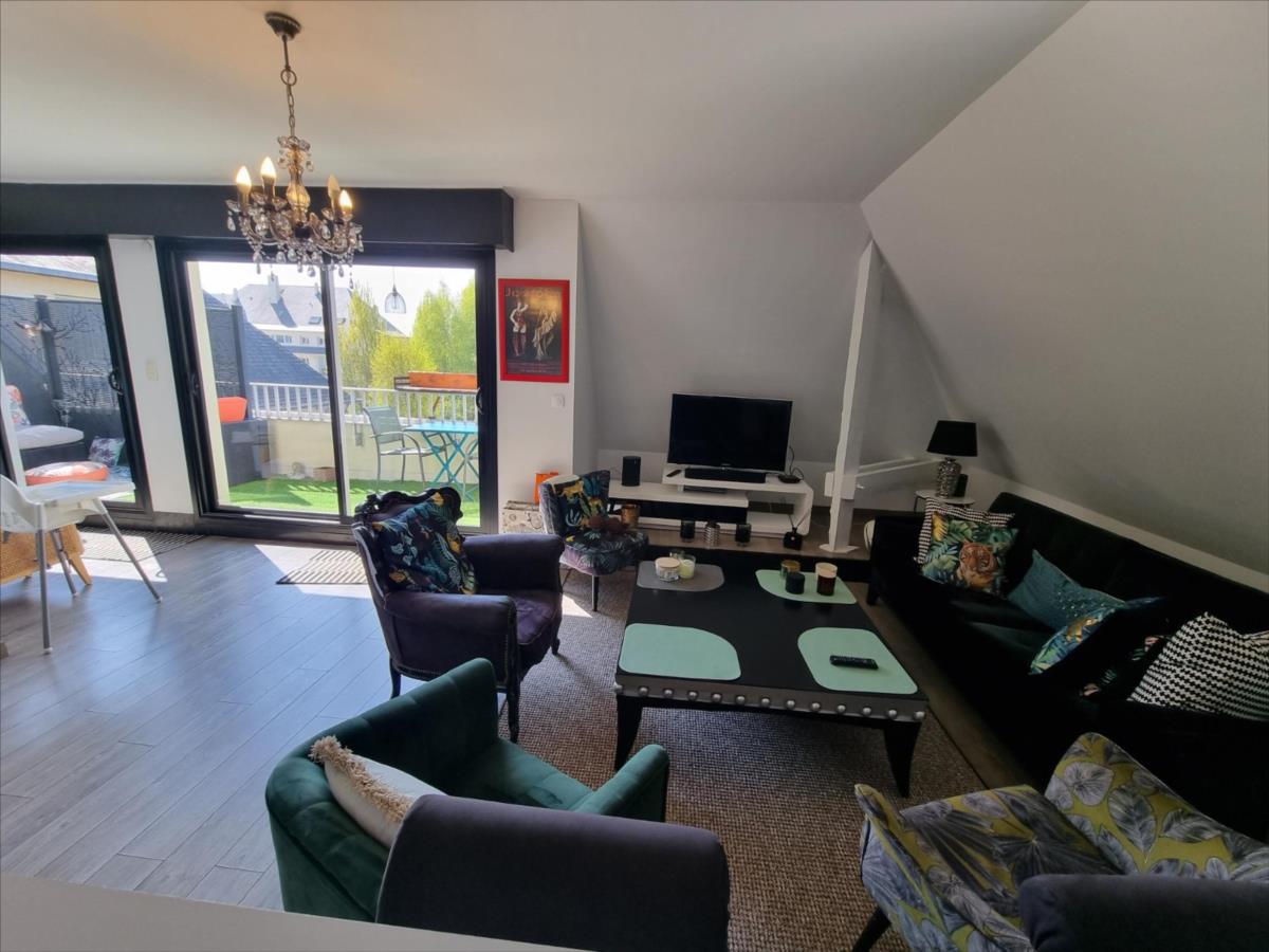 Caen quartier prairie appartement en duplex situé au 4ème et dernier étage comprenant entrée séjour salon cuisine équipée wc dressing deux chambres dont une avec salle de bains privative wc.Etage : pallier desservant deux chambres dont une avec salle d'eau privative wc.