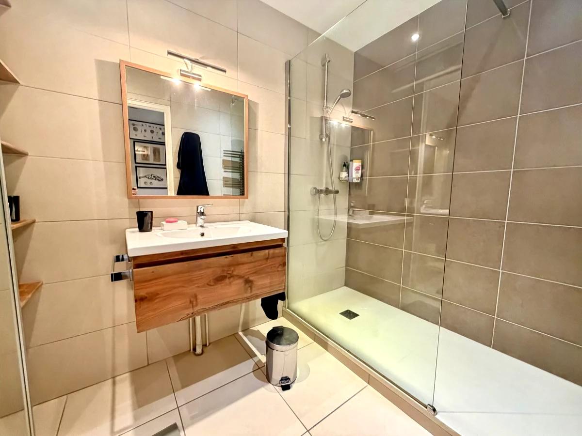 Profitez d’un grand balcon de près de 20m² exposé à l’Ouest, offrant une vue apaisante sur le jardin de la copropriété.