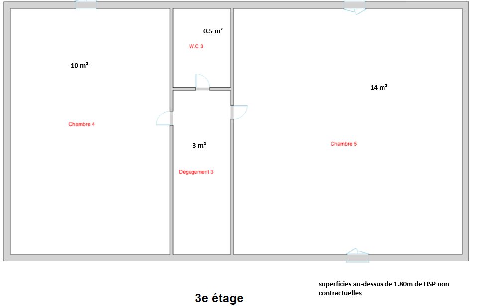 3ème étage mansardé : un nouvel espace nuit avec 2 chambres, chacune avec un lavabo, un WC.