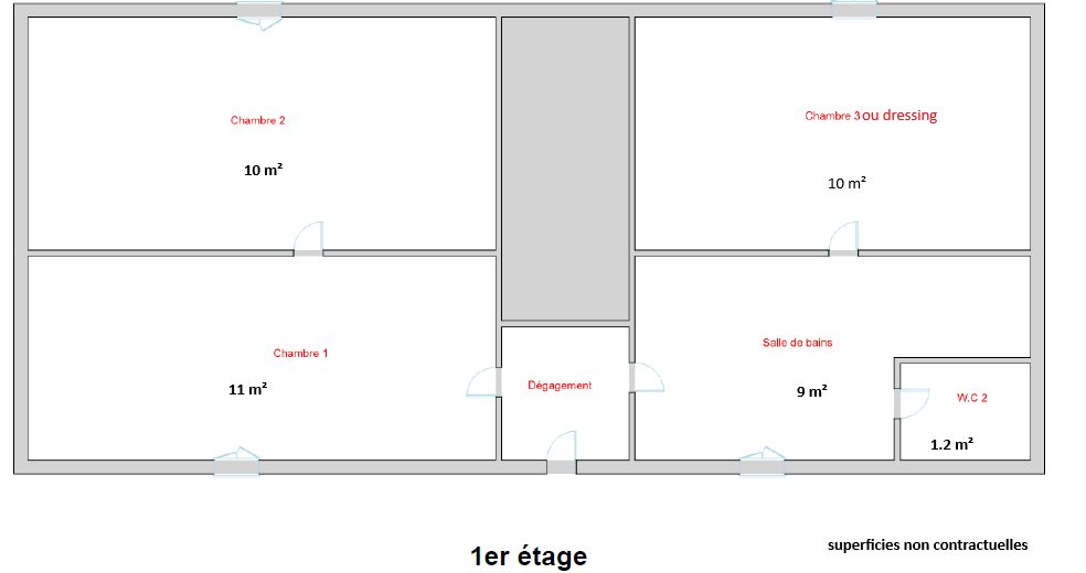1er étage : un espace idéal pour une suite parentale puisqu'il se compose de deux chambres en enfilade (11 et 10 m²), d'un dressing de 10 m² et d'une salle de bains avec WC