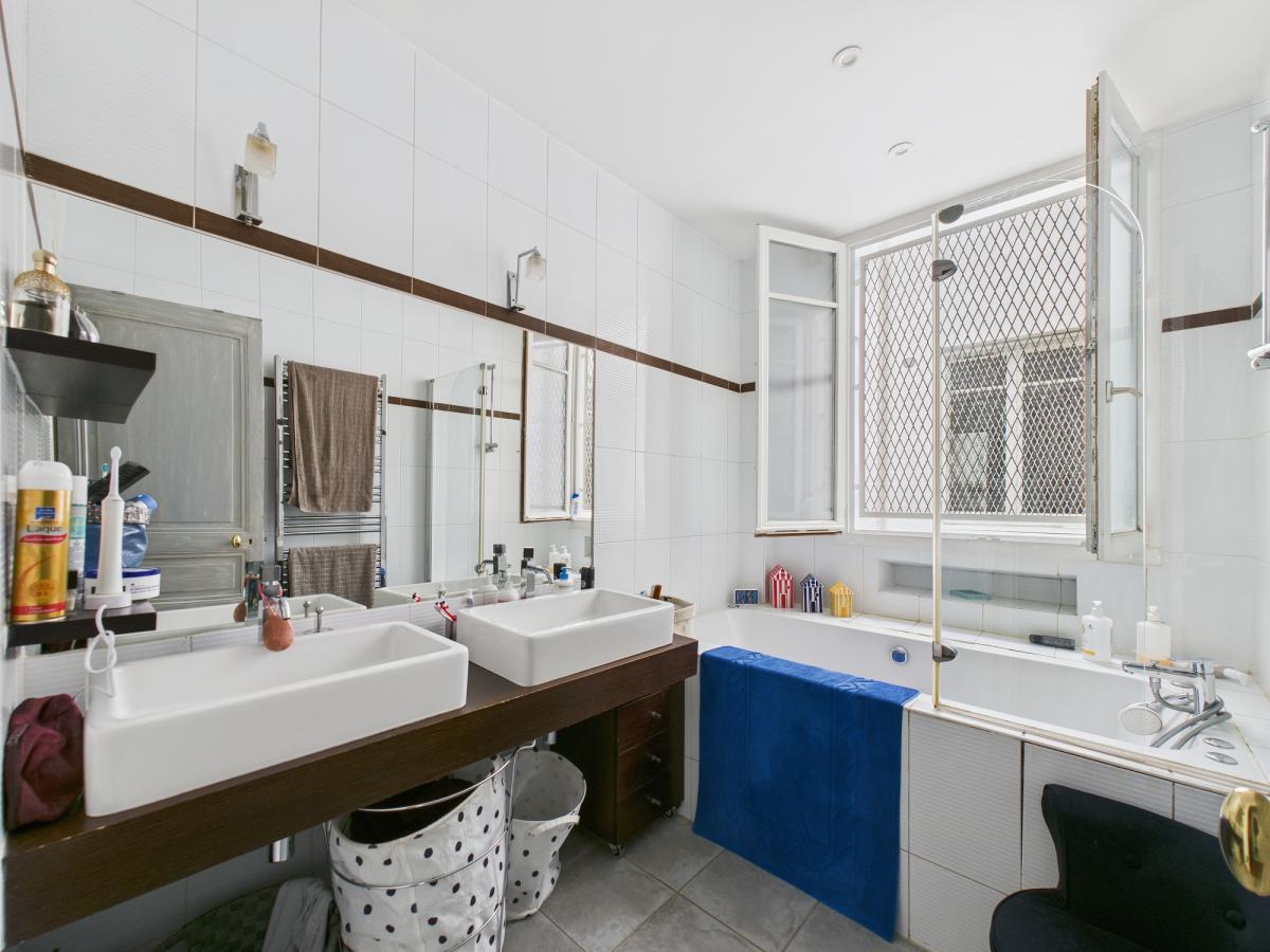 Il se compose d'une galerie d'entrée desservant, côté rue, un beau double séjour (43,61 m²) et une grande cuisine dinatoire (16,28 m²) et donnant sur une grande cour centrale, quatre chambres dont une avec sa salle de douche/WC privative, un dégagement, une salle de bains, un WC indépendant, une buanderie et un dressing.