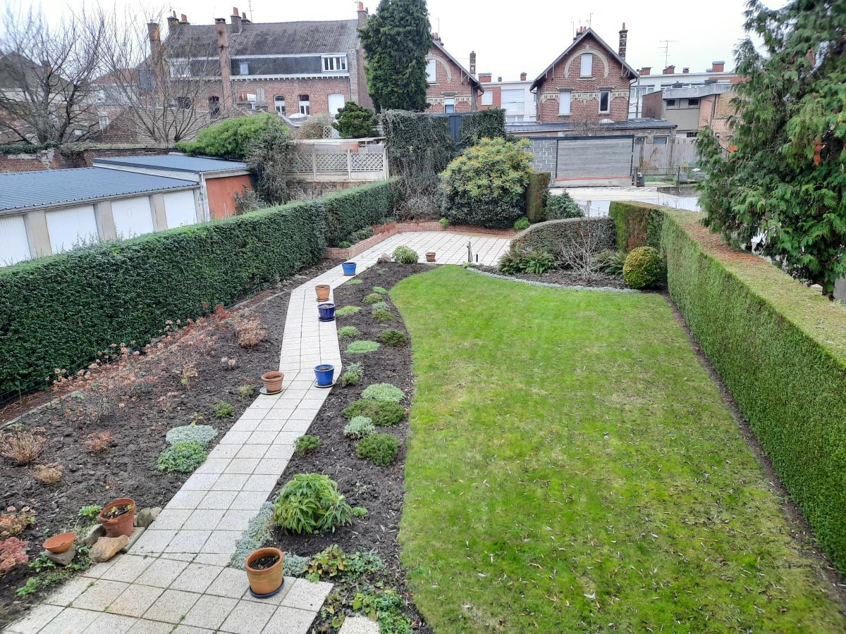 Il se compose d'un hall d'entrée avec vestiaire, salle à manger, salon spacieux, grande cuisine équipée, 3 chambres, bureau, buanderie, salle de bain et WC séparés. Vous profiterez d'une immense terrasse donnant sur un jardin privatif verdoyant et calme, d'une cave et d'un grand garage (idéal camionnette), IDEAL ARTISAN, Nombreuses possibilités - Poss d'acquérir en plus 2 apparts de type II libre d'occupation