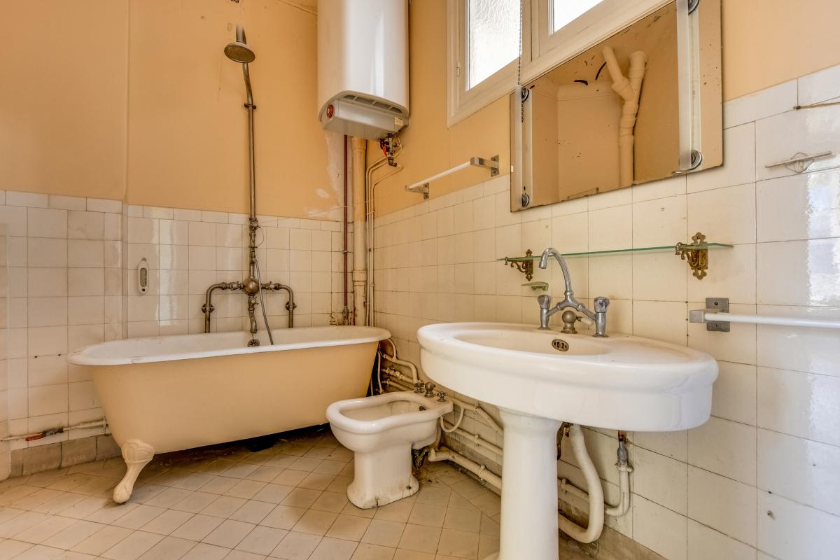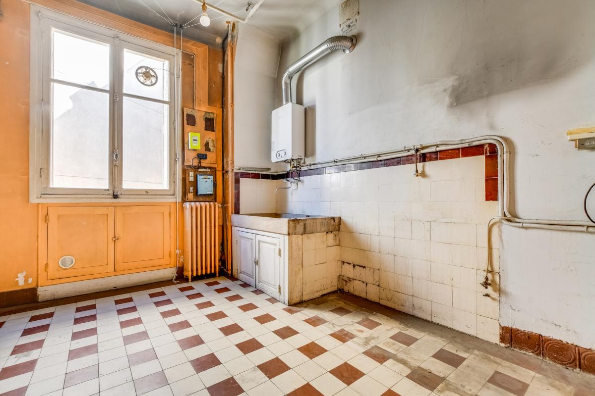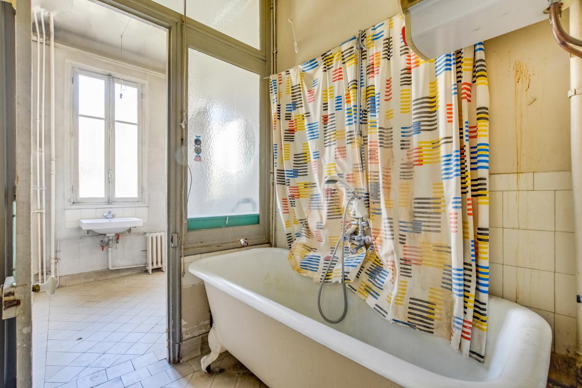 5ème étage avec ascenseur, seul à l'étage, balconnets, exposé Sud Ouest, 3m10 de hauteur sous plafond. Il est à rénover.