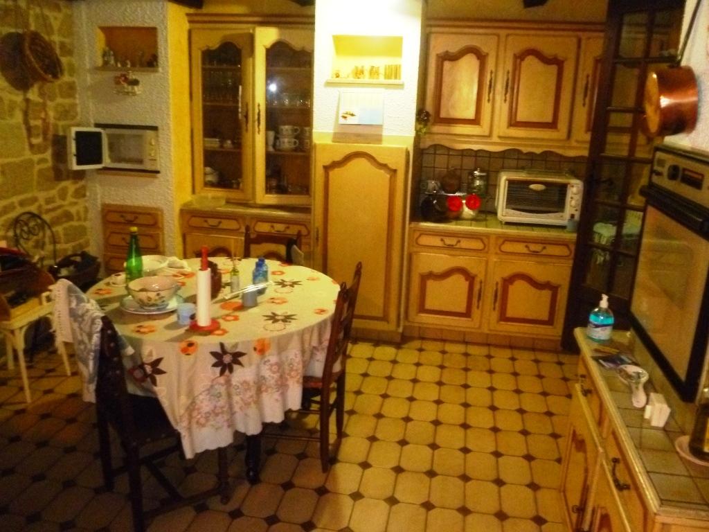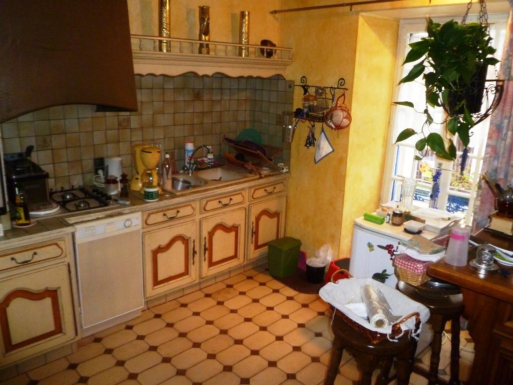 In a pretty town; house of country of 7 main rooms + part for professional use. In good condition, it comprises: On the ground-floor: 2 small commercial premises, boiler room, 2 rooms, wc. And, on the first floor and on 2 levels, habitattion part including: fitted kitchen, lounge, living-room with fireplace, 3 bedrooms, mezzanine, 2 bathrooms, 2 wc, attic. The whole situated on a plot of land of aprox. 260 square meters.