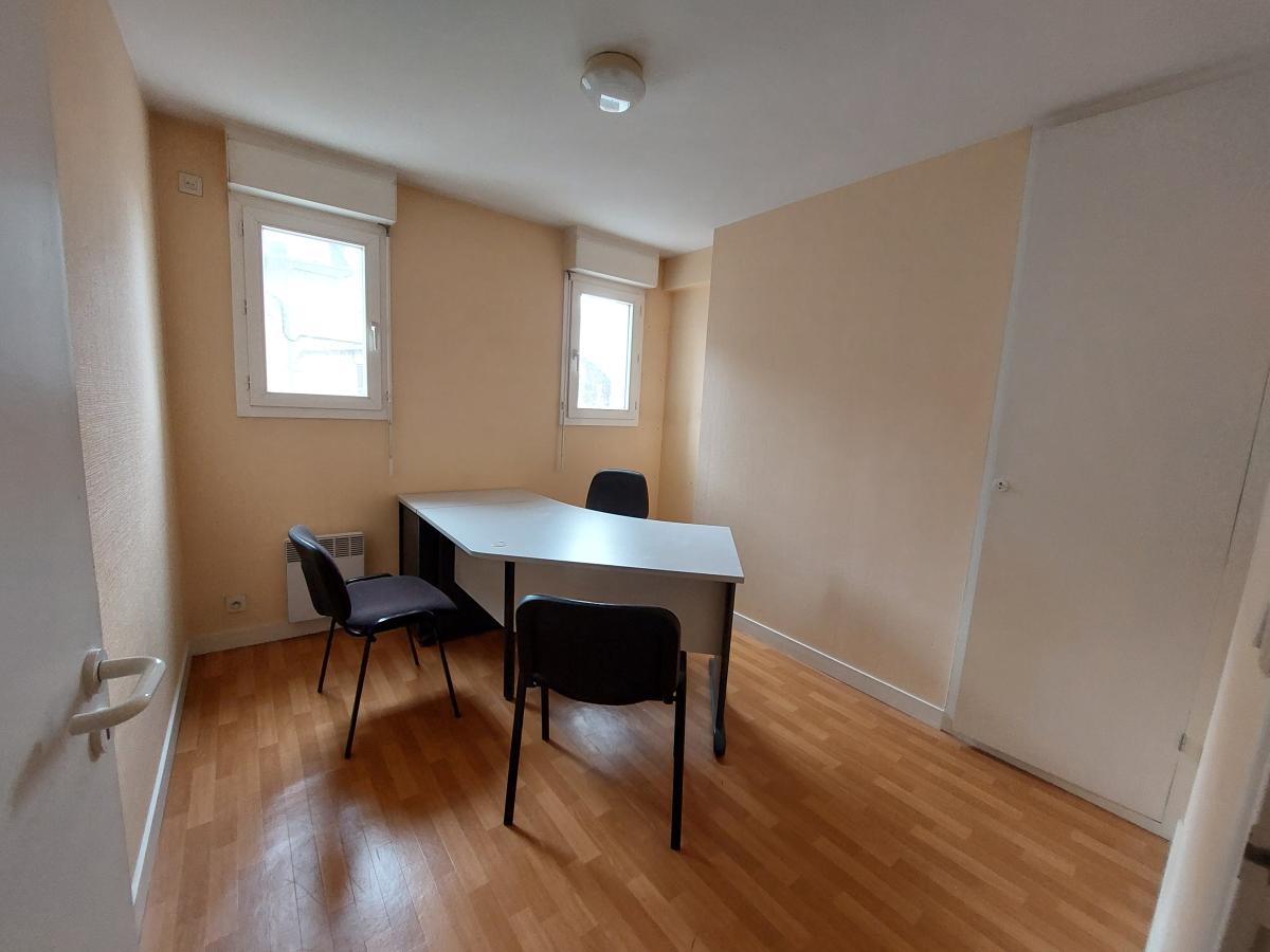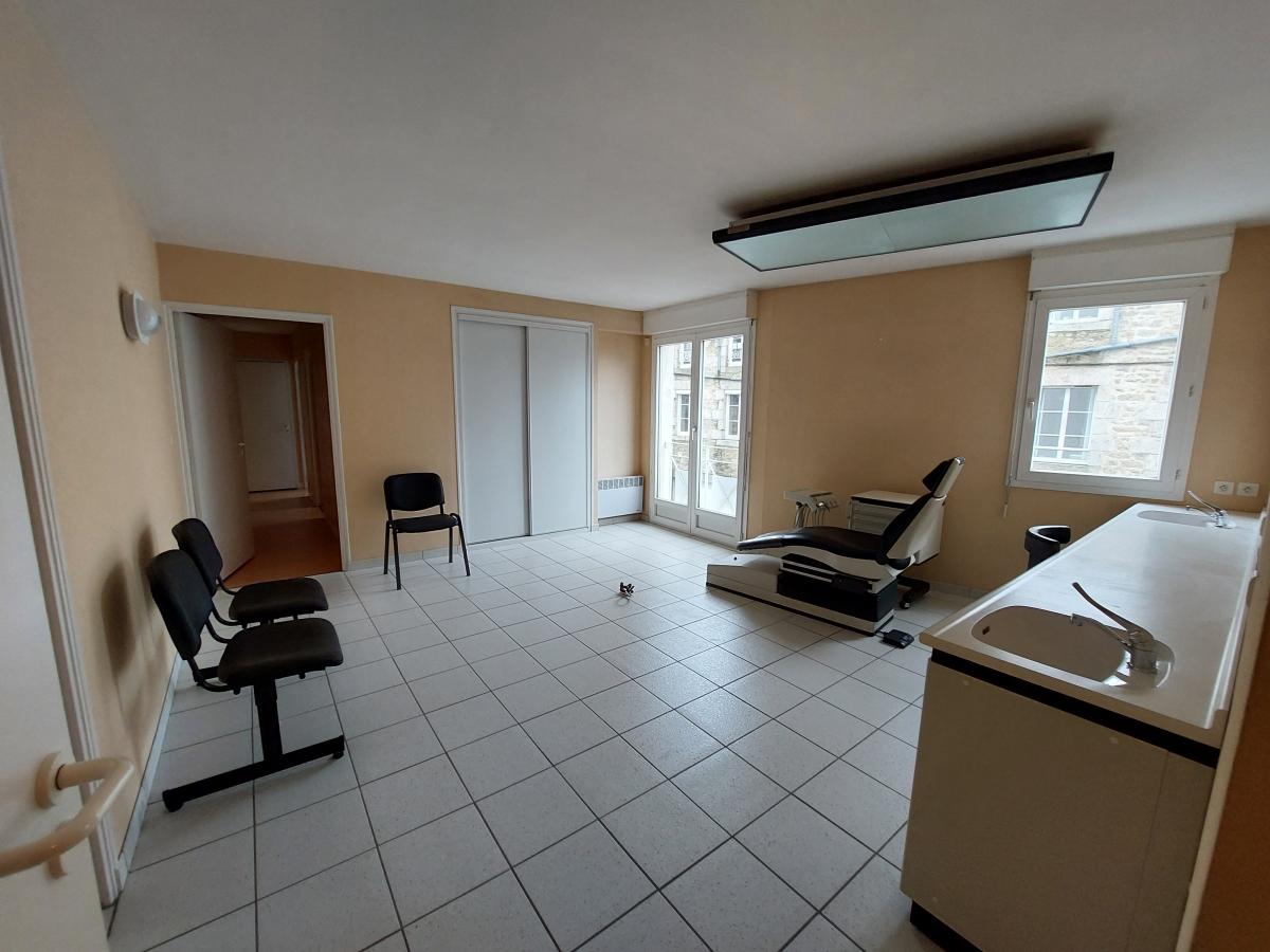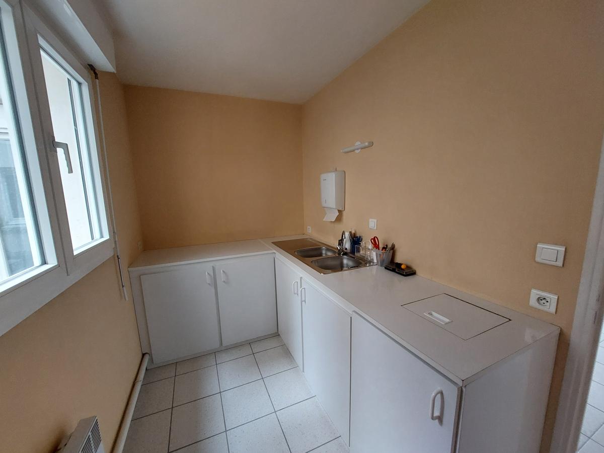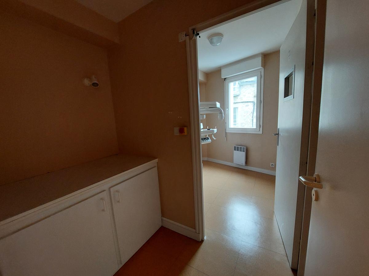 un hall d’accueil, une salle d’attente, des toilettes avec lave-mains, un local technique, un dégagement avec rangements, une salle de radiologie, une grande pièce, une pièce supplémentaire avec placard, un couloir, un bureau, une autre pièce aménagée ainsi que des toilettes.