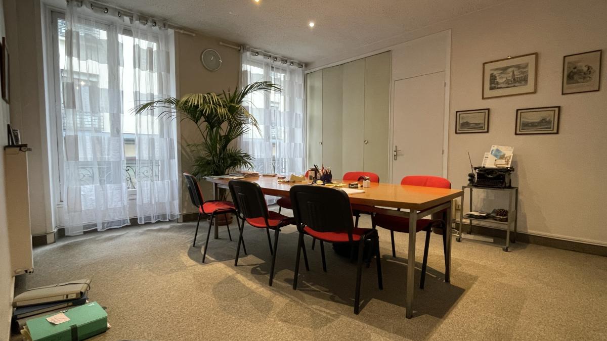 Aujourd'hui à usage de bureaux au 1er étage par ascenseur dans une copropriété haussmannienne.