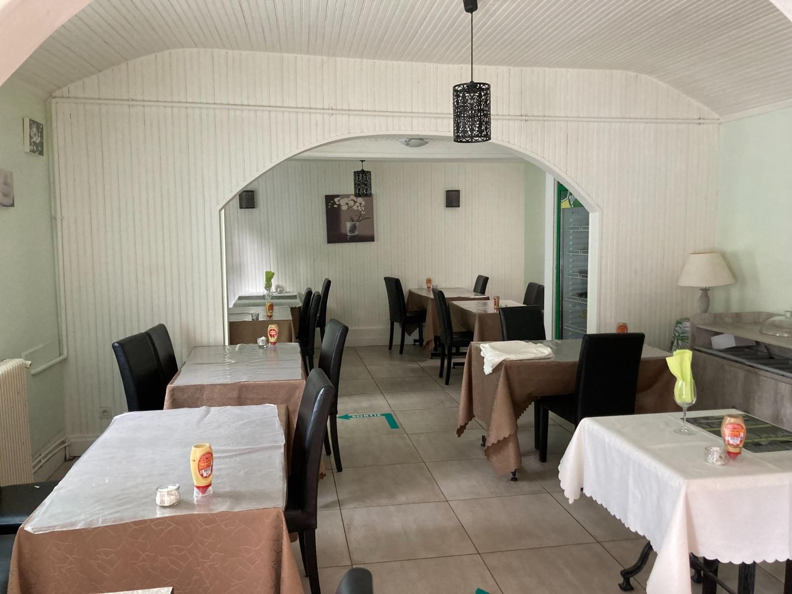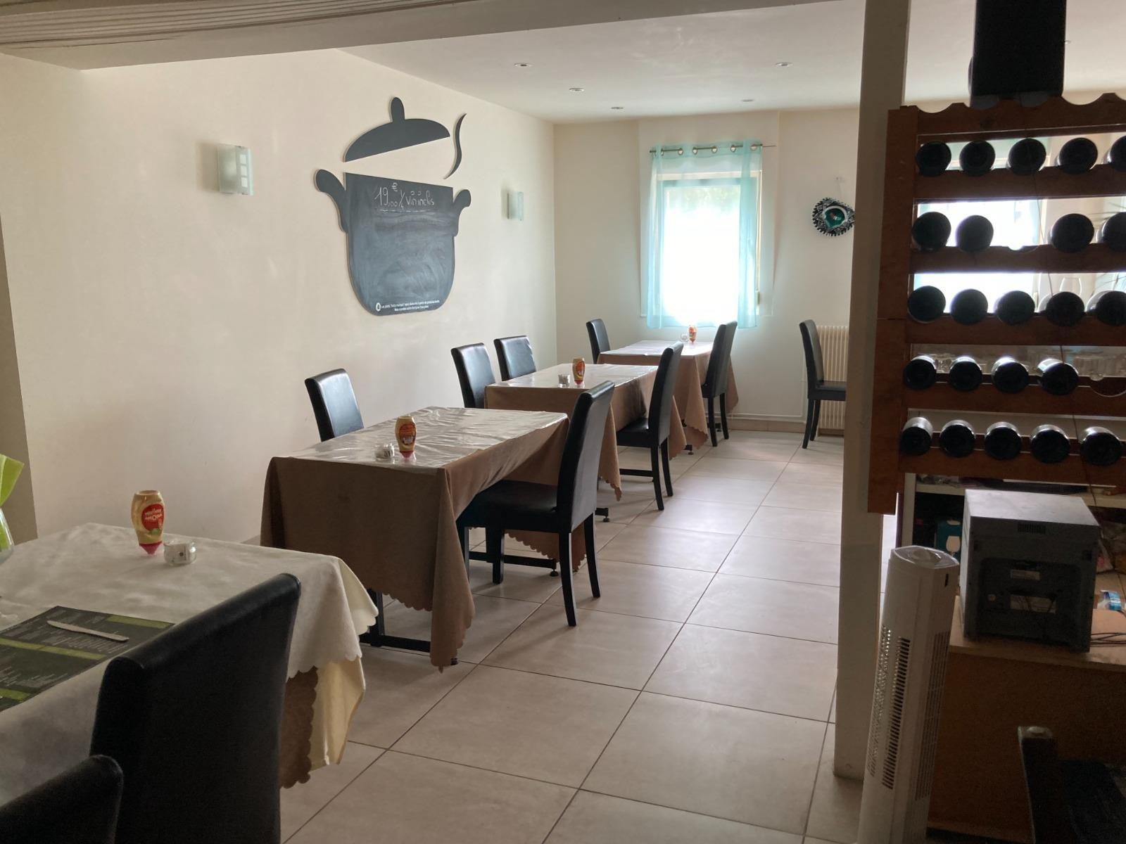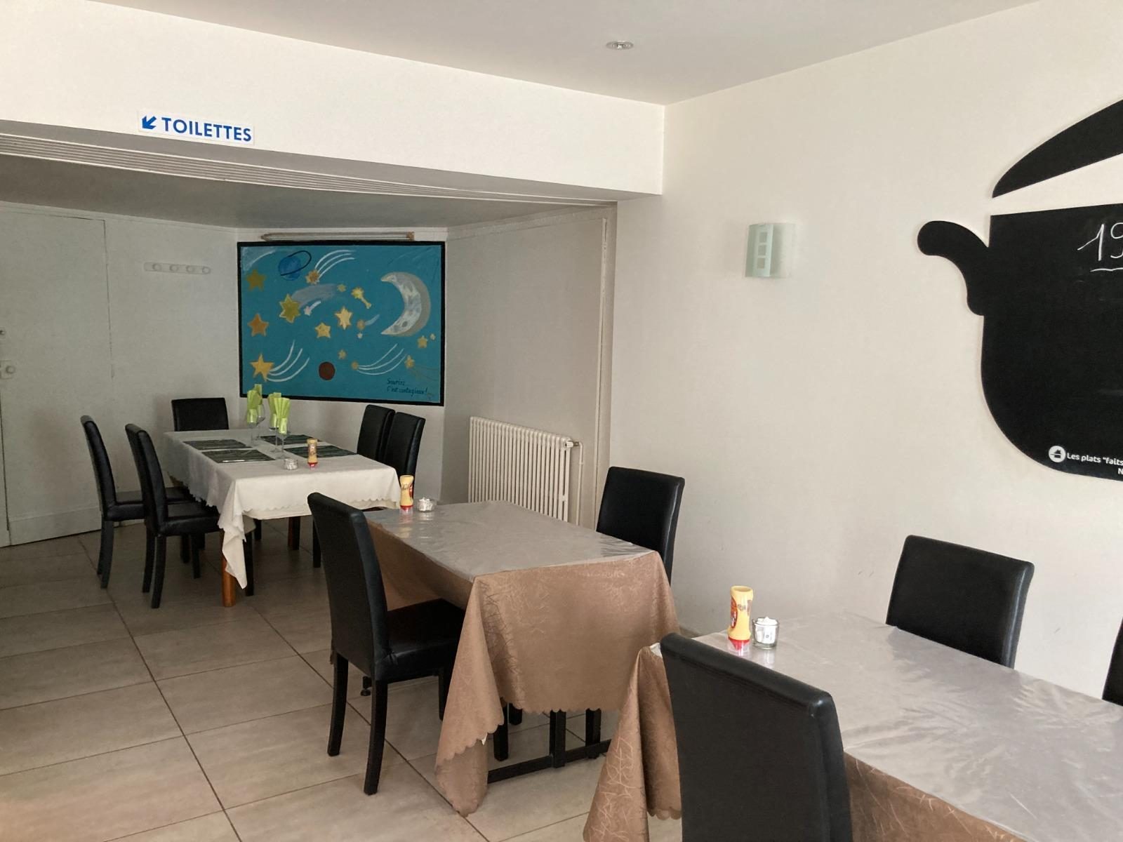 L'immeuble comprend une belle salle de restauration et bar, cuisine et un appartement à l'arrière (passage obligé par la partie professionnelle pour accéder) avec séjour, bureau, deux chambres, salle d'eau et cour/coin vert.