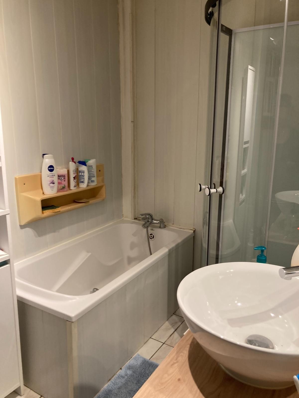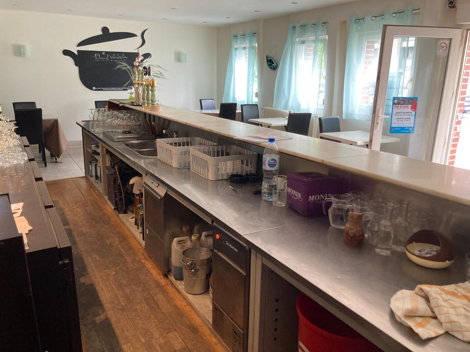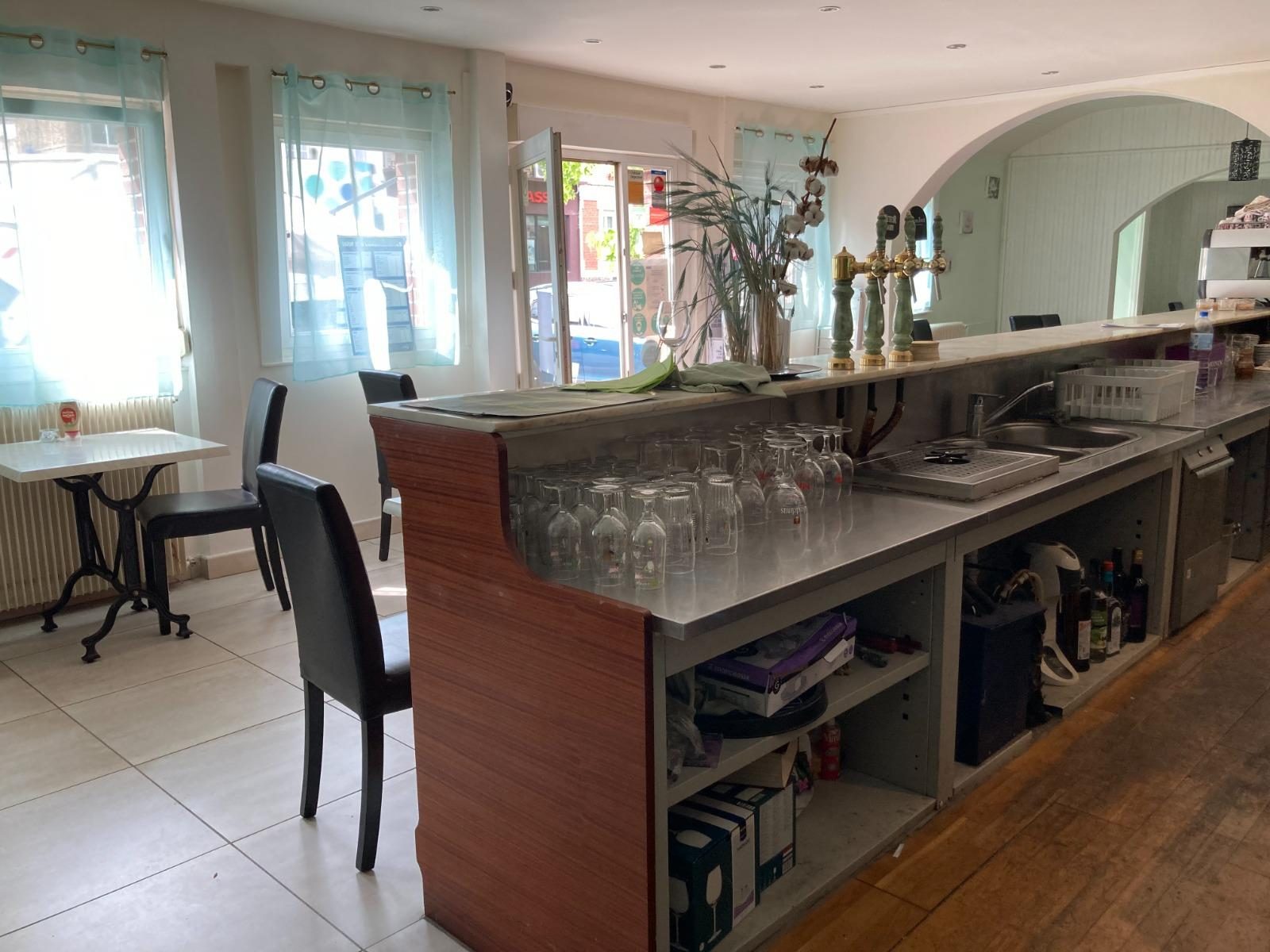 L'immeuble comprend une belle salle de restauration et bar, cuisine et un appartement à l'arrière (passage obligé par la partie professionnelle pour accéder) avec séjour, bureau, deux chambres, salle d'eau et cour/coin vert.