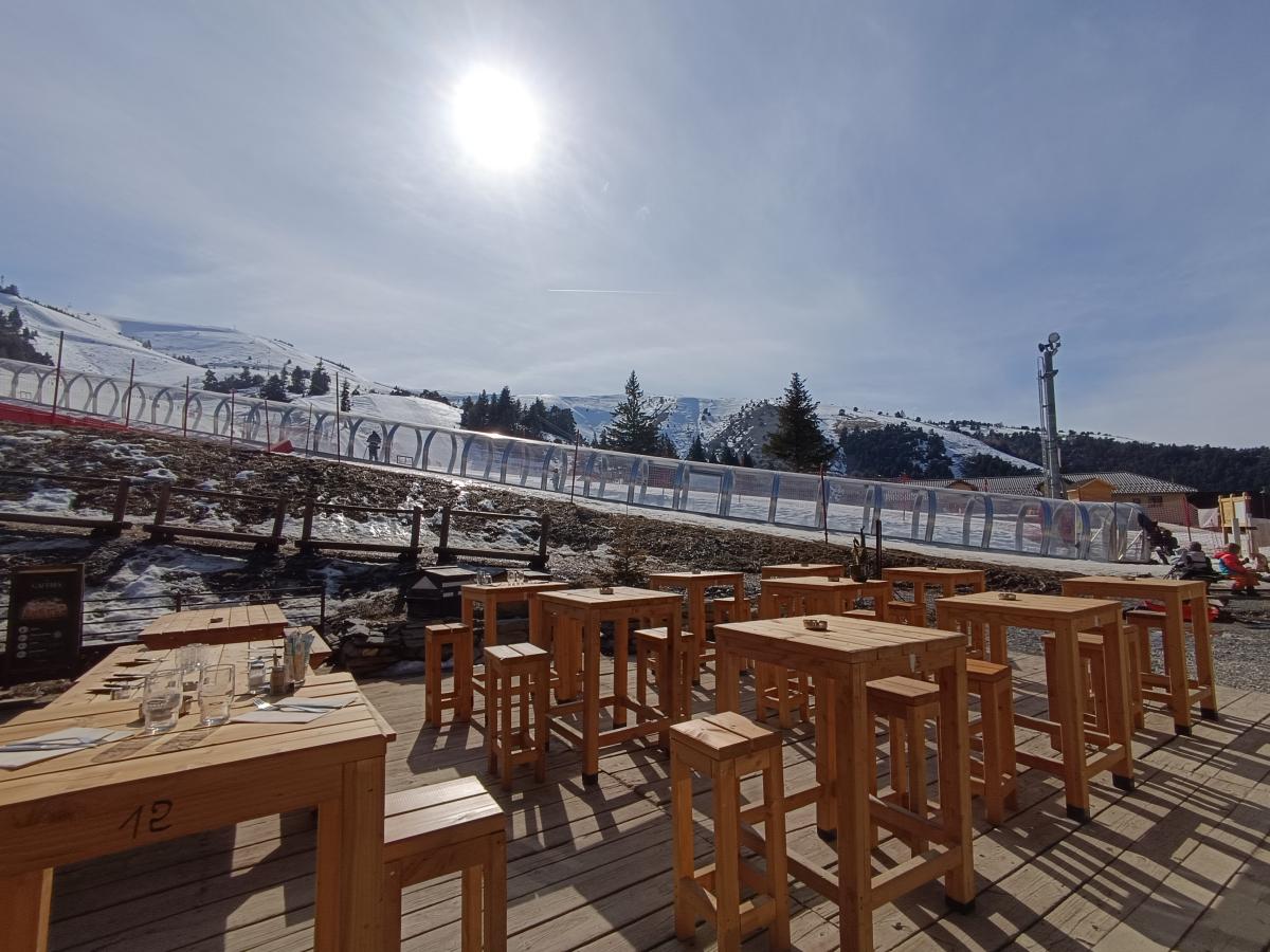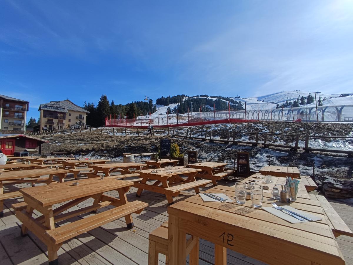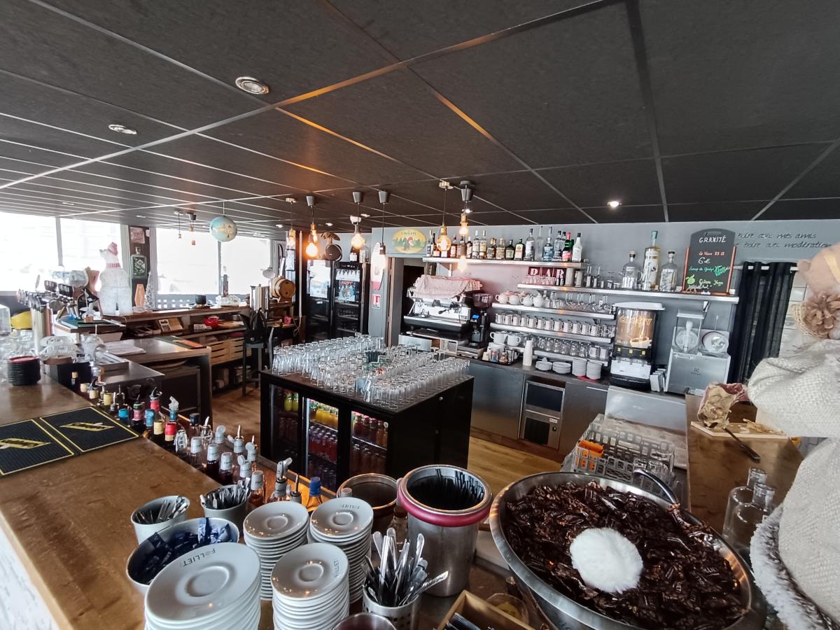 Il offre une salle de restaurant pouvant accueillir jusqu'à 80 couverts, une partie Bar avec mange-debouts et coins canapés cosy ainsi qu'une terrasse en bois en front de neige de 200 m².